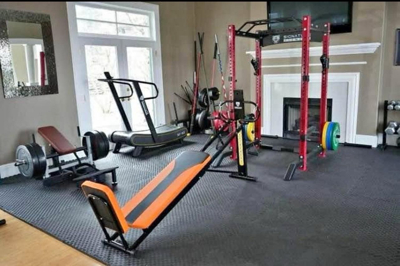 Home Gym System Workout Station with 15 Resistance Levels, Comes with Resistance Bands and Floor Mats, 375-Pound User Weight Capacity Uses bodyweight resistance to strengthen and tone your body Use additional resistance bands to increase weight resistance past user's bodyweight Works efficiently by strengthening and toning multiple major muscle groups at the same time for a quick and effective workout Easily get a full-body workout in just 10 to 20 minutes Maximum weight capacity: 375 lbs You can perform more than 60 different exercises with this single machine, so you don't leave out any of the major muscle groups Home gym equipment offers a way to get fit in the comfort of your own home Possible Exercises Include: Dips, Squats, Pull Ups, Shoulder Press, Chest Press, Butterfly Press, Hip Abductions, Cable Crunches, Tricep Pushdowns, Cardio Pull, and MANY more!