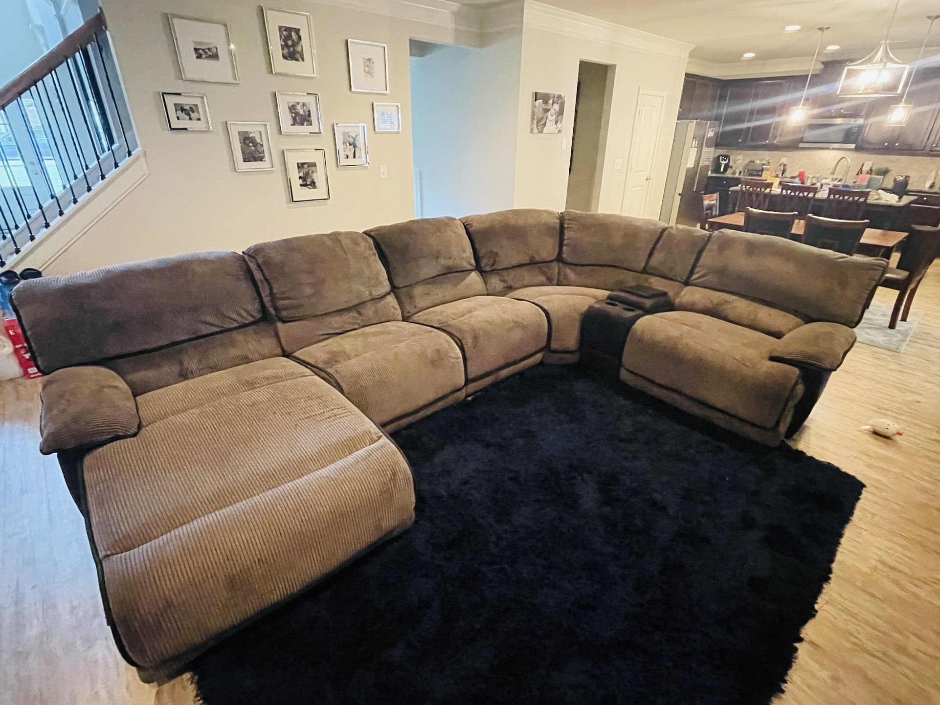 Gently used for 3 years, has a large chaise lounger and 2 other seats that also recline as well as the left arm is an electric power motor recliner. Has served my family well but we are downsizing. Purchased for $3,499.99 but, will let go for $650!!!! Must PICK UP!!!!!! Serious Buyers only! Perfect Couch for your House or Basement
