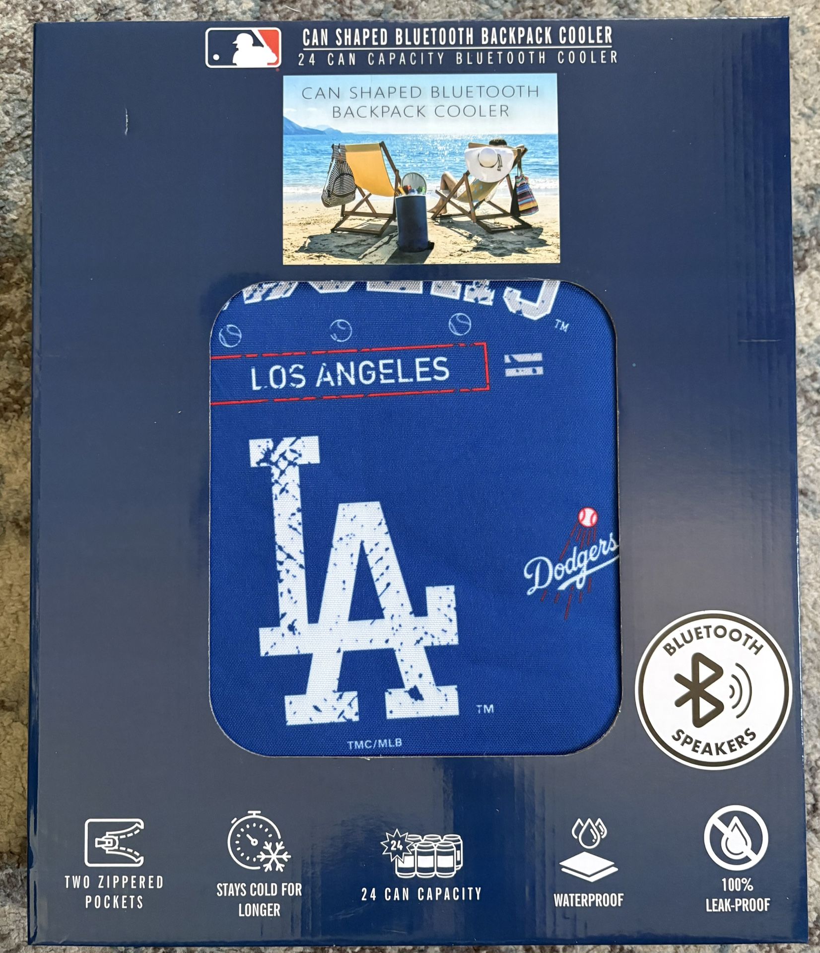 Retails for 40$ at TJ Max asking for 30$ obo Perfect for the beach or the park. Make any occasion a festive an fun one with this awesome can shaped cooler with licensed dodgers gear connect your phone listen to music an enjoy cold beverages. Capacity: Holds up to 24 cans. Features: Built-in Bluetooth speaker functionality for audio. Design: Shaped like a beverage can with backpack straps for portability. Included: Charging cable for the Bluetooth component.