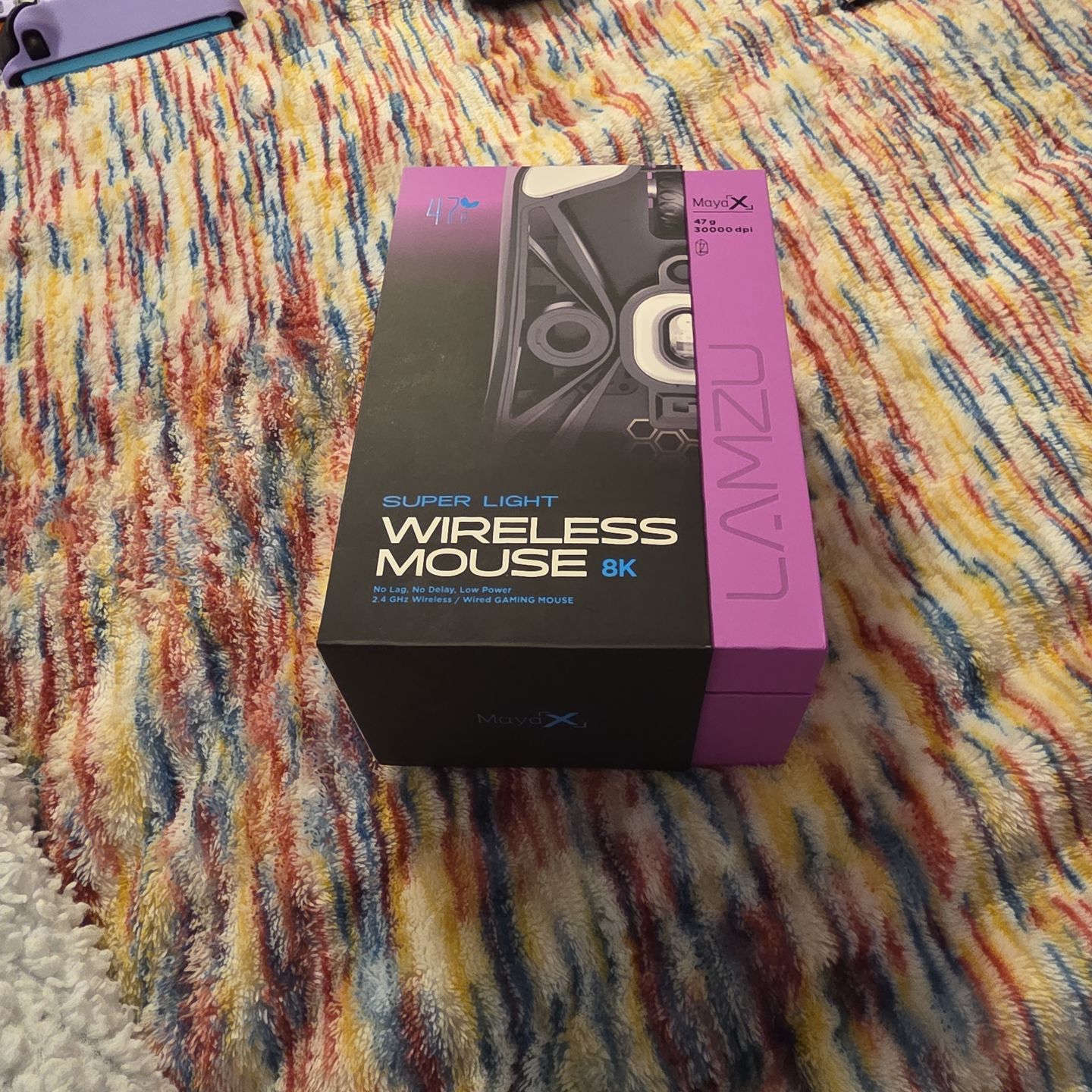 30000 dpi Pixart 3950 Optical Senor 8k polling Right-Handed Claw, Palm, or Tip Grip Standard Scroll Wheel, 4 Buttons Color:Shadow Purple 47g weight-super light Usb-c cable included Wireless receiver adapter included Skates as well Box and all paperwork included Only had about 2 months, kept in box, hardly used