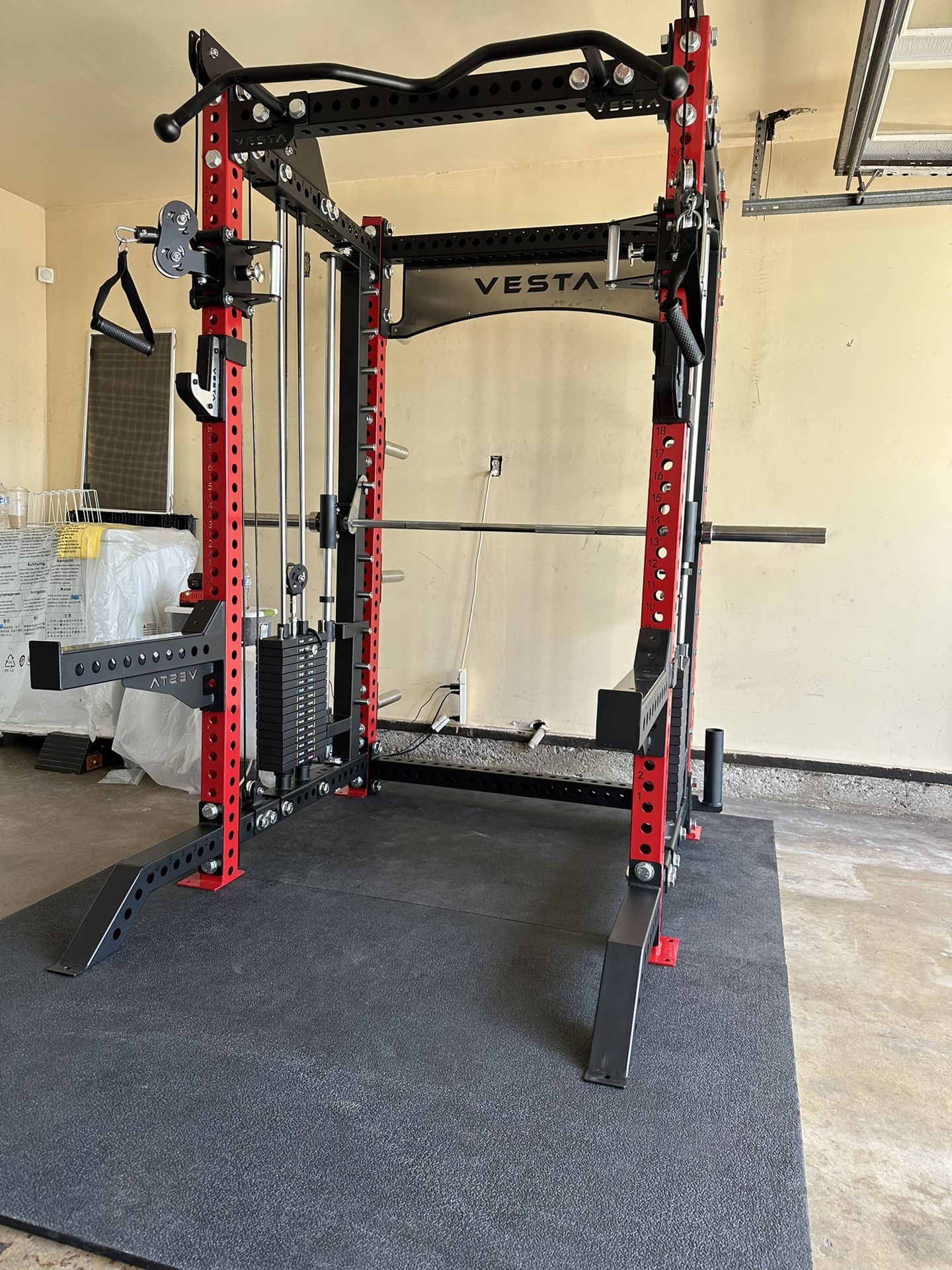 Includes Gym Equipment w/Weights! Let Me Help You Create Your Home Gym! New In Box! FREE DELIVERY AT FULL PRICE!Click Profile For More Gym Listings! Only Account! Cash / Credit Cards / Venmo / Finance Available! ➡️ COLORS AVAILABLE : CLEAR COAT / RED / WHITE / BLACK⬅️ ➡️➡️HEIGHTS : 94” / 86” ⬅️⬅️ ➡️FREE DELIVERY at FULL PRICE ⬅️ •INSTALLATION IS AVAILABLE• •CREDIT & FINANCING AVAILABLE; •BUY NOW, PAY MONTHLY• ask for more info ➡️➡️MAKE IT A BUNDLE ⬅️⬅️ W/ AB3000 / 260 BUMPERS / 7Ft Barbell $3999 ⭐️⭐️⭐️⭐️⭐️ CUSTOMER SERVICE OVER 950+ SATISFIED CUSTOMERS 💪 🚨‼️BLACK FRIDAY SPECIAL MESSAGE FOR MORE DETAILS‼️🚨 Prepare to be blown away by the astonishing versatility of our 3-IN-1 Machine - it’s not just a piece of equipment, it’s a game-changer. After extensive research, development, and rigorous testing of multiple prototypes, we’ve achieved perfection with our ultimate all-in-one machine - the best combination of a Half Rack, Functional Trainer, and Smith Machine. All our Pro Series products have laser cut numbering with 1-inch hole, 3”x3” frame with commercial 11-gauge steel and massive 1-inch hardwares. Tested and approved by multiple gym owners and personal trainers in our Los Angeles Showroom, this masterpiece is engineered to surpass expectations and built to endure, and set to redefine your fitness journey. MEASUREMENTS Height: 94" bottom to top of pulley Width: 80" total width, from end of the smith bar to the other end Length: 65" from foot extension to barbell holder in the back FEATURES 160lb x2 weight stacks - free weight horns included to add free weights up to 275lb each side 33 height settings 2:1 Pulley Ratio Olympic Smith Barbell 45lb, 700lbs, with bearings Premium Aluminum pulley wheels Commercial grade cables J-Cups, Spotter Arms, and Barbell holder are all INCLUDED D-Handles is INCLUDED OLYMPIC WEIGHTS GYM EQUIPMENT OLYMPIC STANDARD WEIGHT SLED PUSH SLED WEIGHTS WEIGHT PESAS SQUAT RACK POWER CAGE SMITH MACHINE BENCH PRESS INCLINE DECLINE BARBELL BAR HEX BAR BUMPER PLATES ADJUSTABLE BENCH FLAT BENCH BENCH DUMBBELLS DUMBELL ADJUSTABLE DUMBBELLS KETTLE BELLS DIP STATION PULL UPS PULL DOWN BATTLE ROPE BOWFLEX POWERTEC POWERBLOCKS HOIST BODY SOLID ROGUE FITNESS EXERCISE