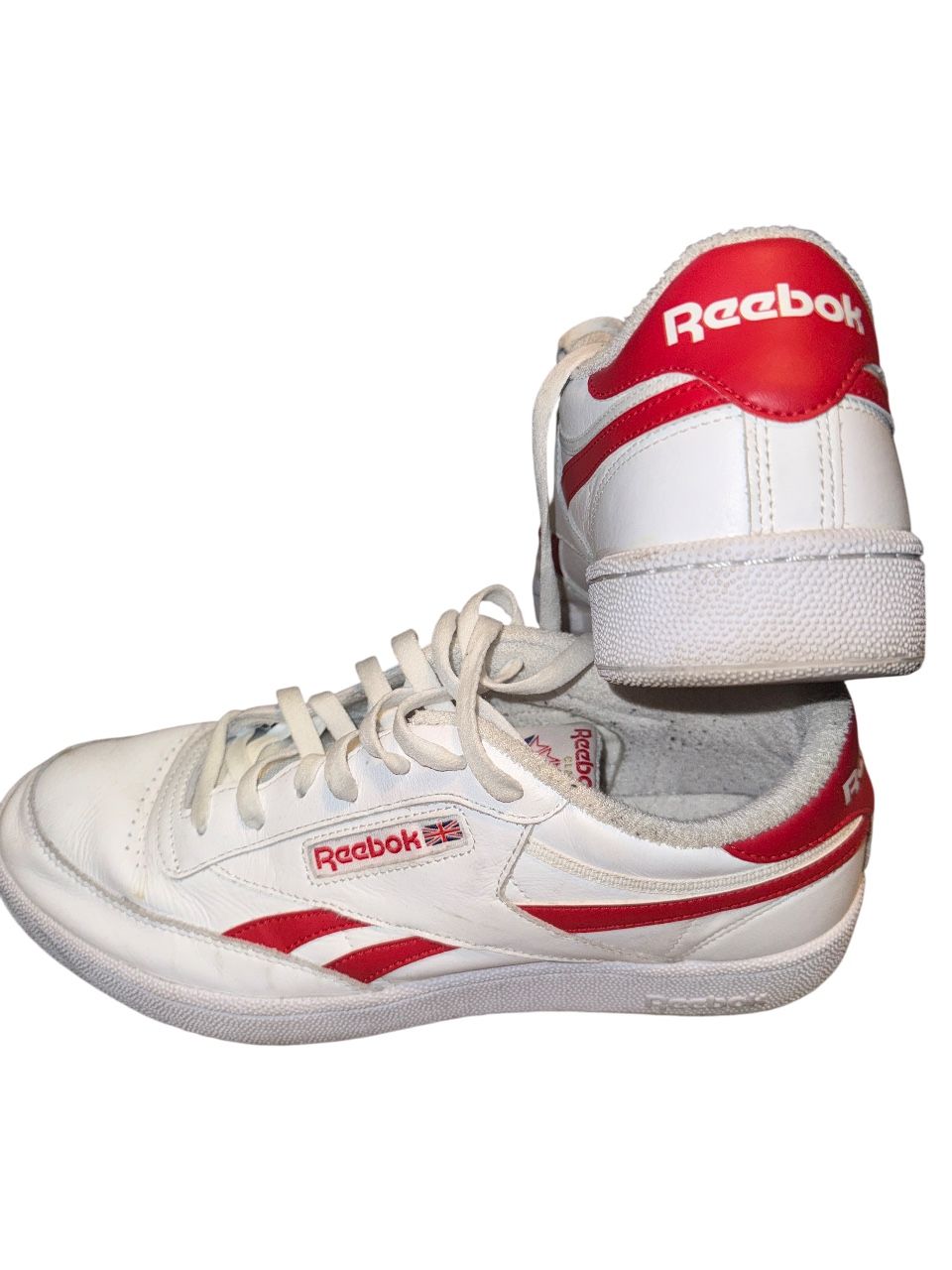 Clean Reebok Classic sneakers in white with red accents. Timeless low-top design that’s easy to wear with jeans, shorts, or joggers. Comfortable and versatile—great for everyday wear or casual fits. Classic Reebok look that never goes out of style. • Brand: Reebok • Color: White with red accents • Low-top sneakers • Gently worn, no major flaws