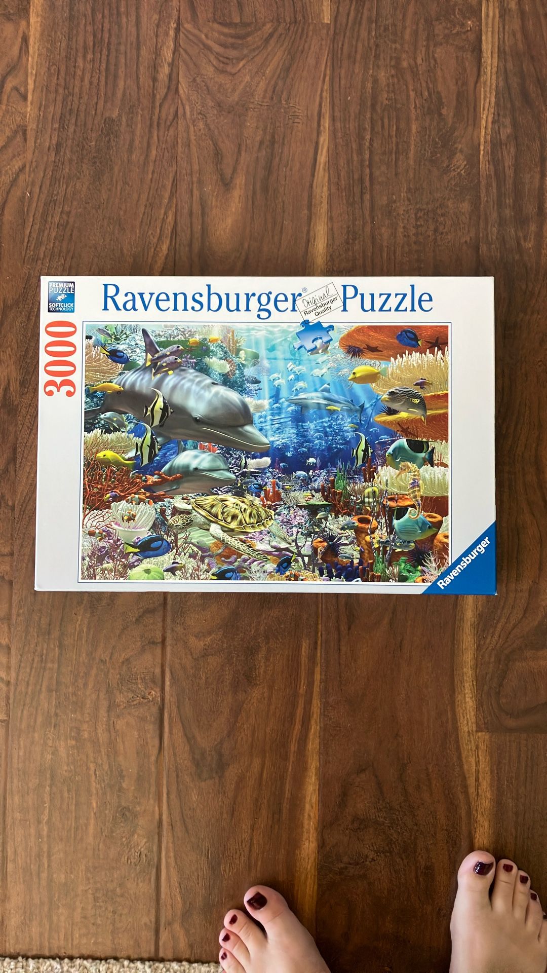 42 “x 32”’ under water puzzle. Pieces are split into four quadrants if you want to make the assembly a little easier.