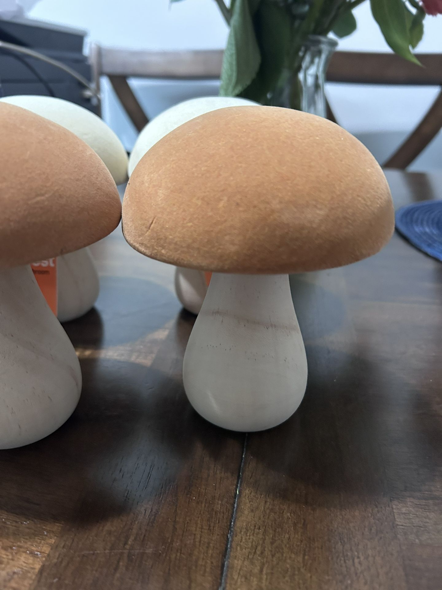 3 Orange mushroom decor 3 cream mushroom decor 5.6 inches height Wood New $5.00 each or all for $25