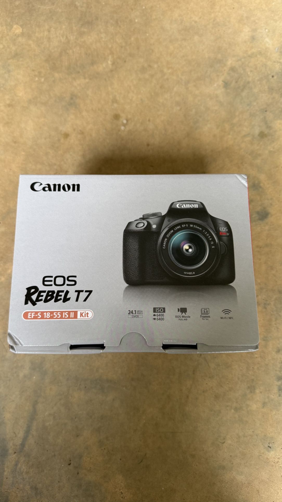 Brand new in box never used or turned on. Items removed 1 time just for photos. 24.1 mega pixels ISO 6400 EOS movie 3.0 frames per sec WiFi/NFC