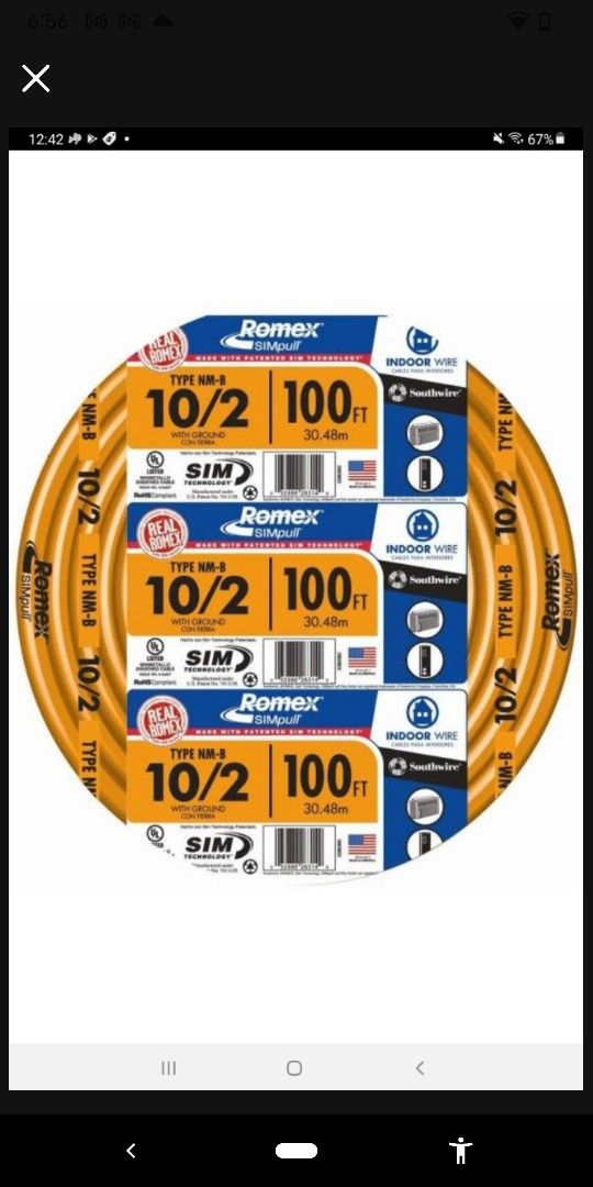 2 Rolls Of 100 ft. 10/2 Orange Solid Romex Simpull CU NM-B W/G Wire