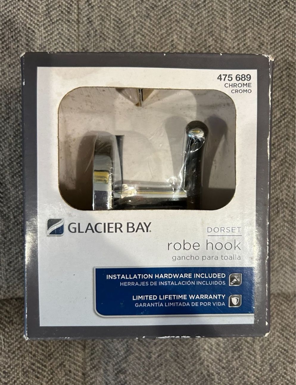 Brand new Glacier Bay Dorset robe hook in chrome finish — still sealed in original packaging with all installation hardware included. - Size: 2” W x 2.4” L x 2.9” H - Condition: Never opened, box is a little worn but product is untouched - Finish: Polished chrome Price as listed OBO. Exact cash or Venmo only!