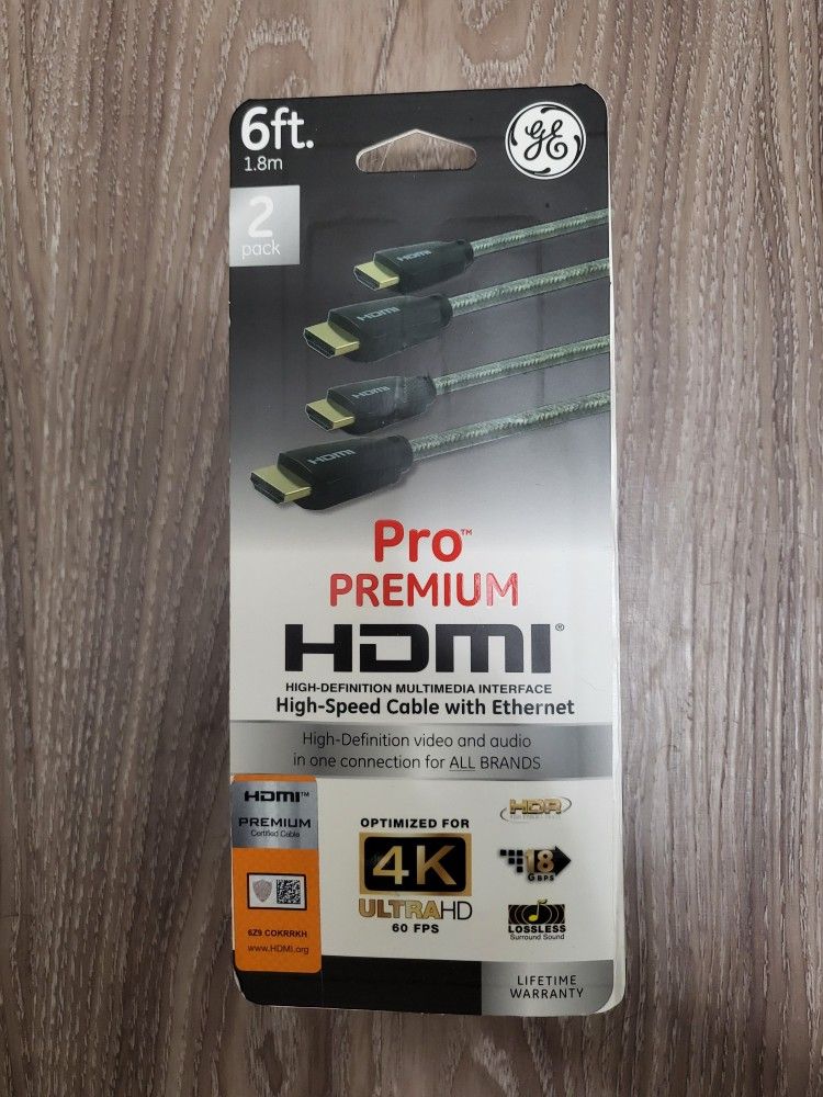 GE Pro Premium HDMI Cable -Brand New -High-Definition Multimedia Interface -High Speed Cable with Ethernet -Optimized for 4K UltraHD