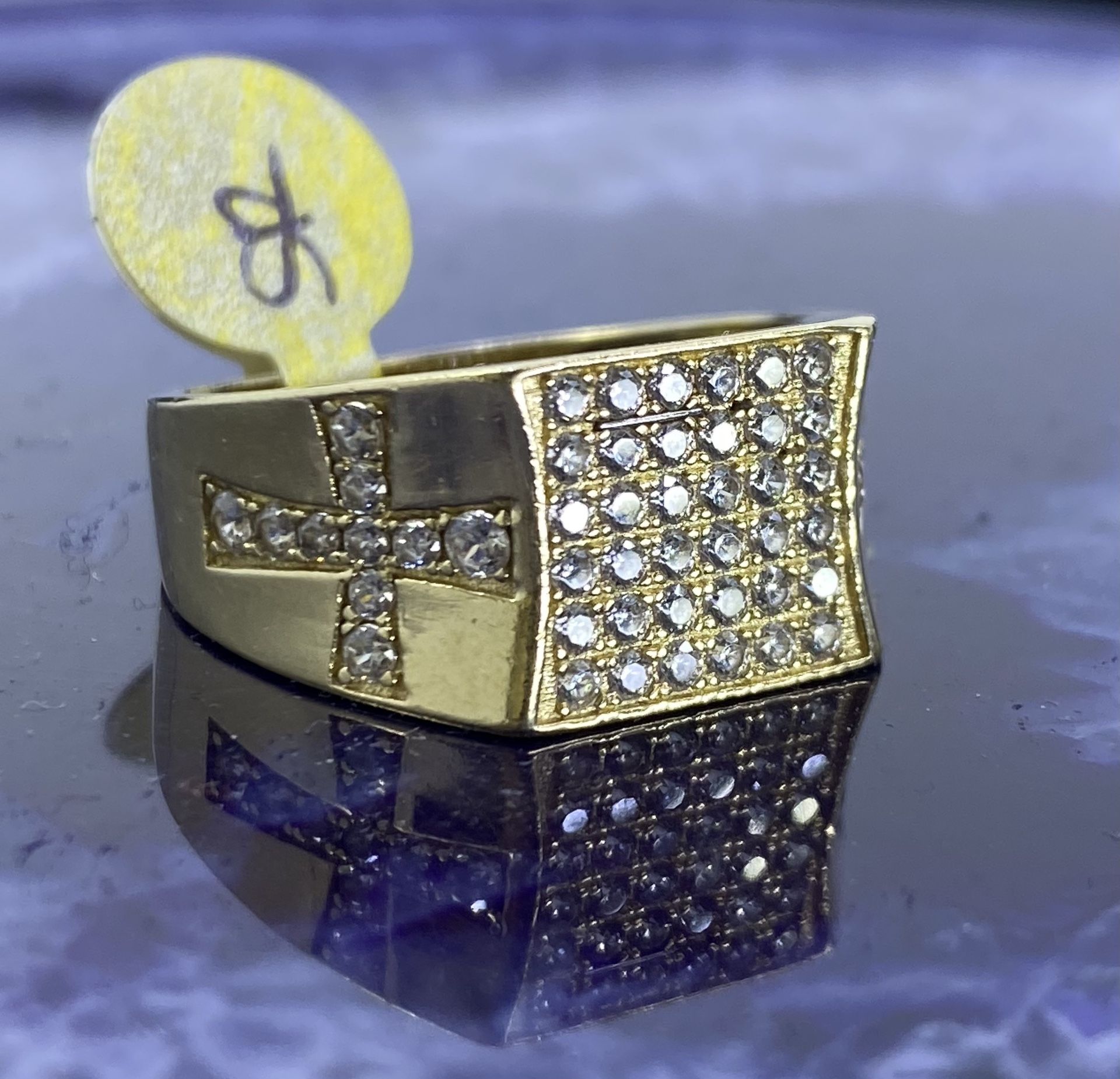 $1100 Yellow Gold W Zirconia Cross Band Ring
