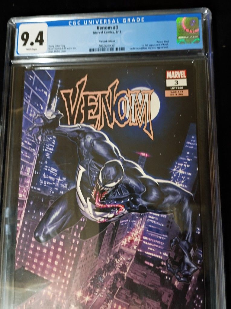 Local pickup only north east Houston Texas. Graded comic book venom 3 first knull graded 9.4 asking 145$ cash only. I also have other comic book lots listed check them out.
