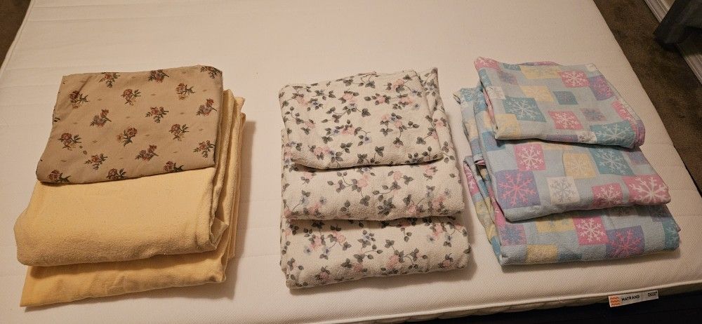 2 sets of gently used Flannel sheets. $15 each set Bottom fitted sheet + Top sheet + 1 pillow case