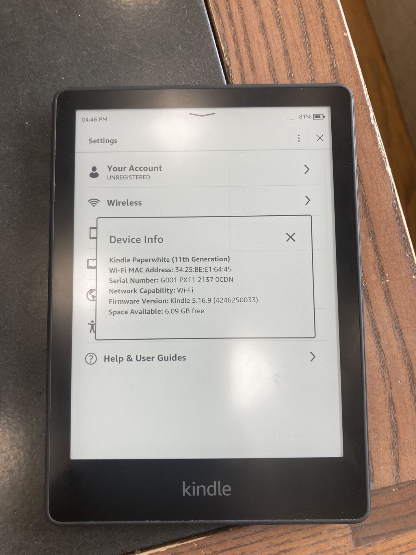 Kindle Paperwhite (11th Generation) Fully functional and works great. Condition: Good/used - some light scratches - visible wear on the back - No charging cable included Holds a charge well and the touchscreen works perfectly. Would make a great gift. Asking $60 OBO Local pick up only.