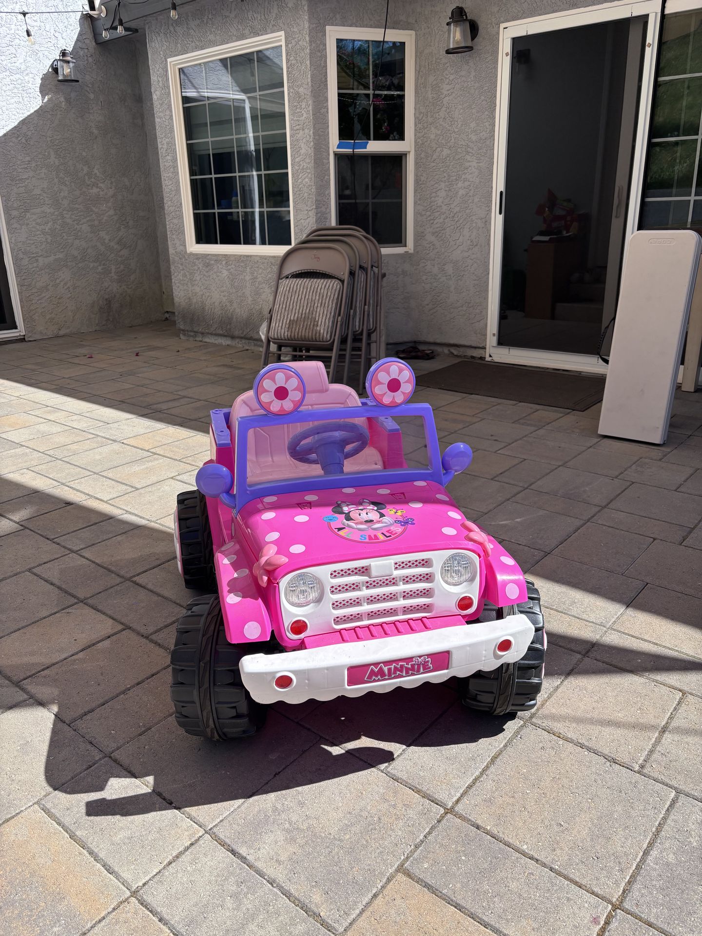 Key Features at a Glance: Vehicle Type: Ride-on Car (4x4 style) Power Source: 6V rechargeable battery (4Ah capacity) Maximum Speed: 2 mph Seating Capacity: 1 child Age Range: 36–60 months (3–5 years) Weight Capacity: Up to 60 lbs Assembled Dimensions: 42.6" L x 28.9" W x 29.1" H Seat Height: 12" Features: LED headlights, horn sound, engine sound, foot pedal acceleration, forward/reverse Tires: Power Trax rubber traction strip for stable riding on various surfaces Color Variant: Pink Flower Power Edition