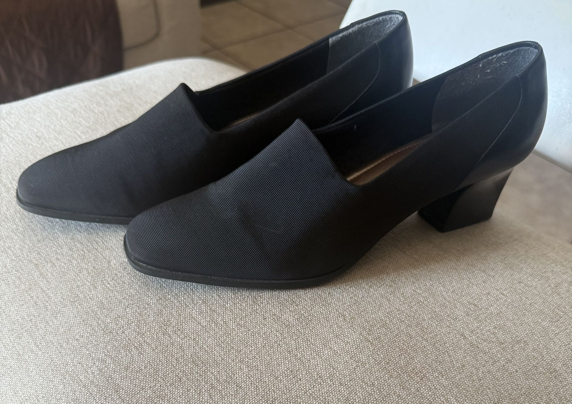 Size 7: Naturalizer jeannie black fabric heels 2 1/8" high narrow toe (848N70)