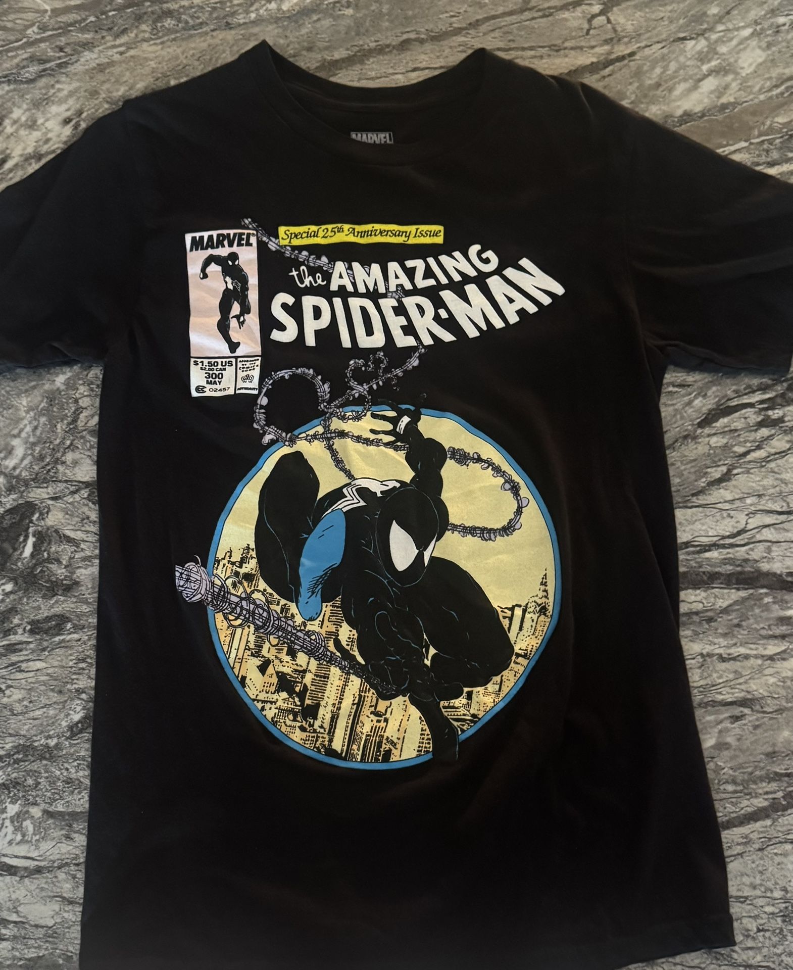 Marvel, The Amazing Spiderman Comic Book Cover T-Shirt, Black with comic Symbiote Spiderman design, Small