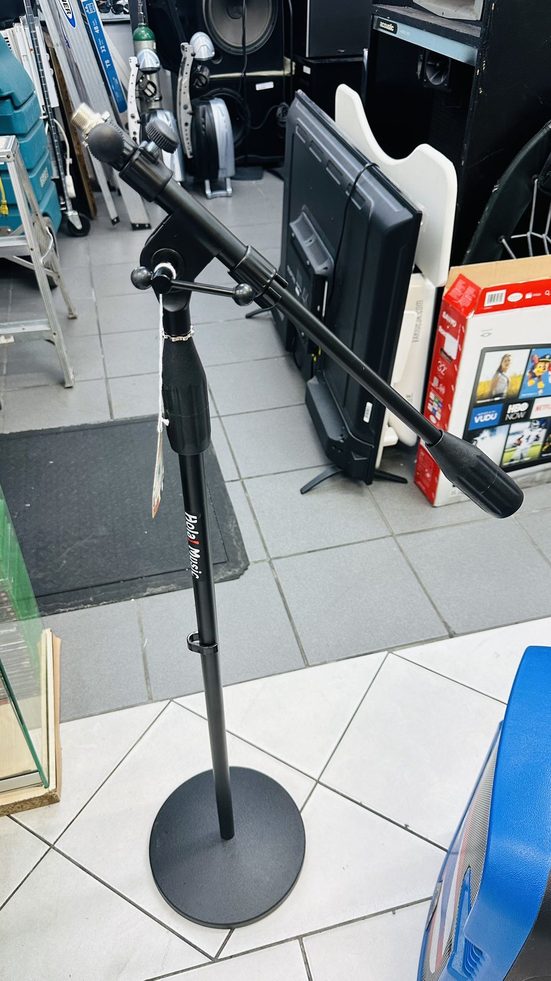 Microphone Stand, Detachable Weighted Round Base Mic Floor Stand with Boom Arm Pop Filter Mic Clips 3/8" to 5/8" Adapter Cable Ties, Height Adjustable