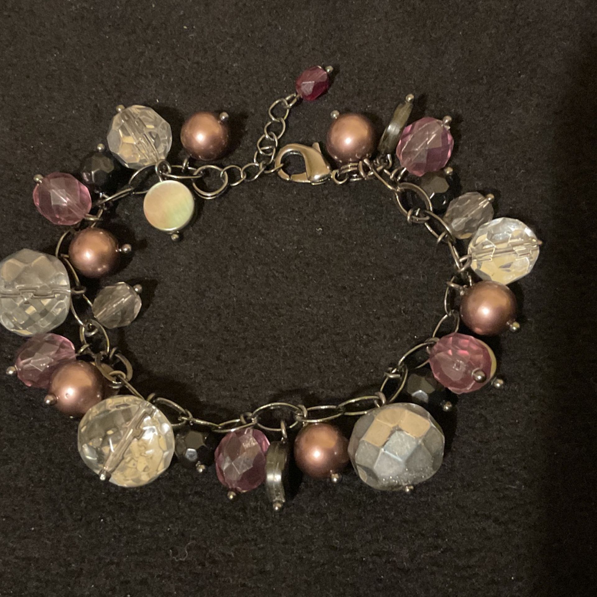 7”-8”SilverTone Chain Bracelet With Dangling Beads And Crystals