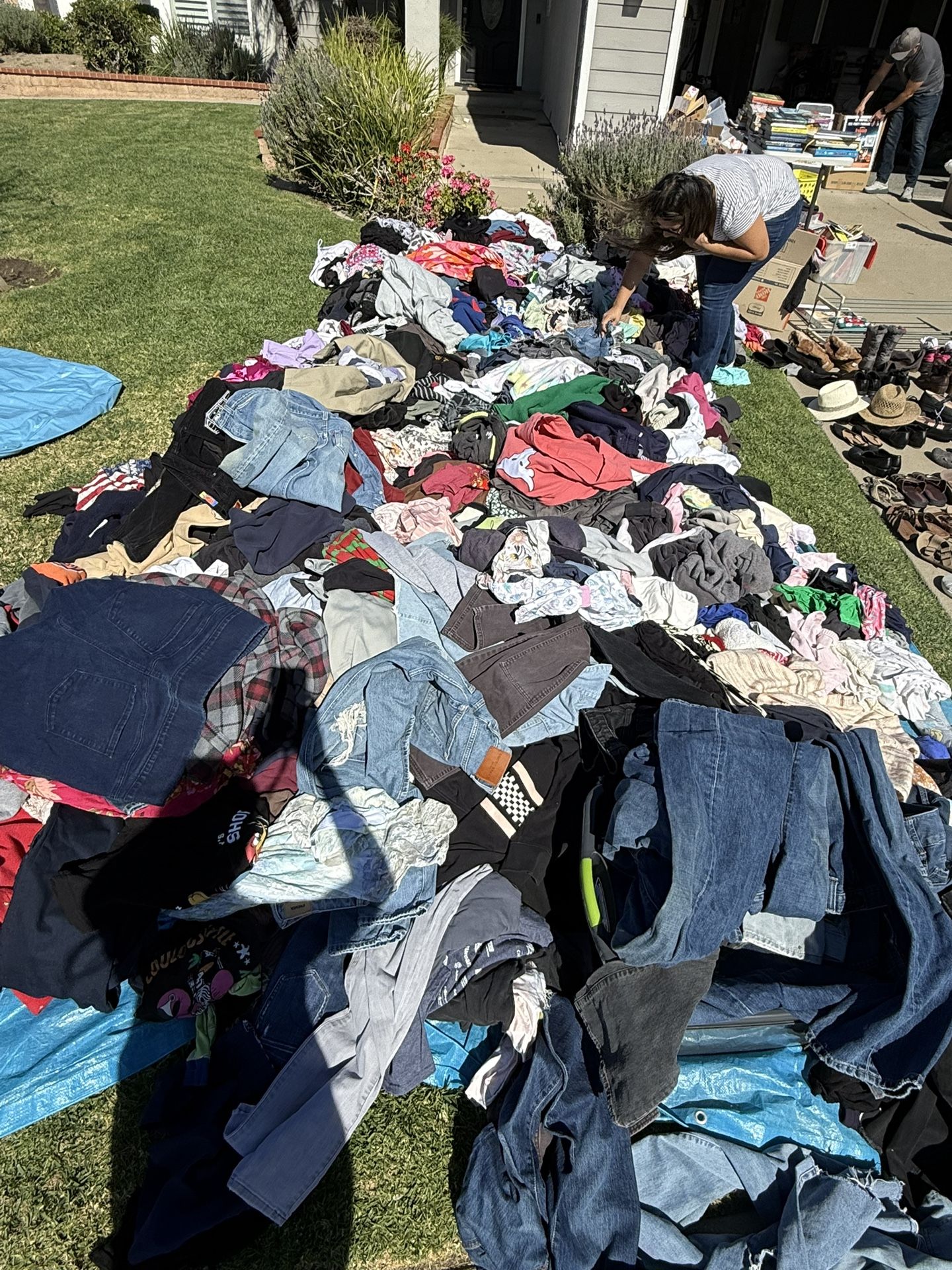 Garage sale fundraising for my son's baseball team. Mostly used clothes but some are new with tag. Men, women, boys, girls, toddlers. Fill up a bag for $15 Items are near Anaheim packing house