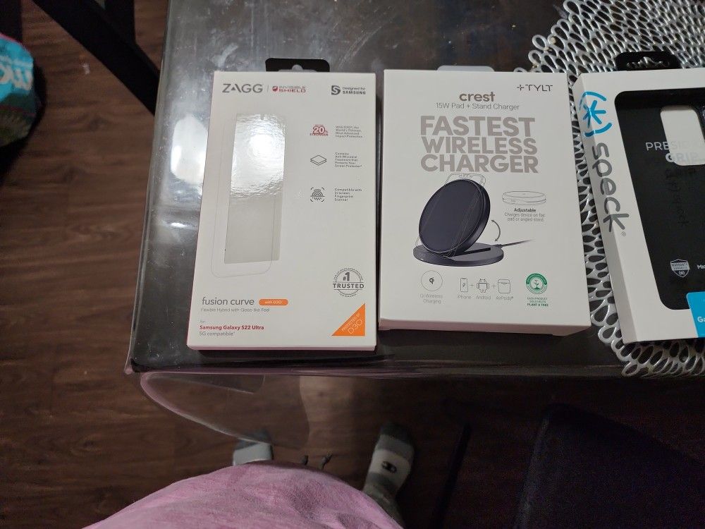 Samsung S 22 Ultra New Screen Protector Wireless Charger And Case ONlY