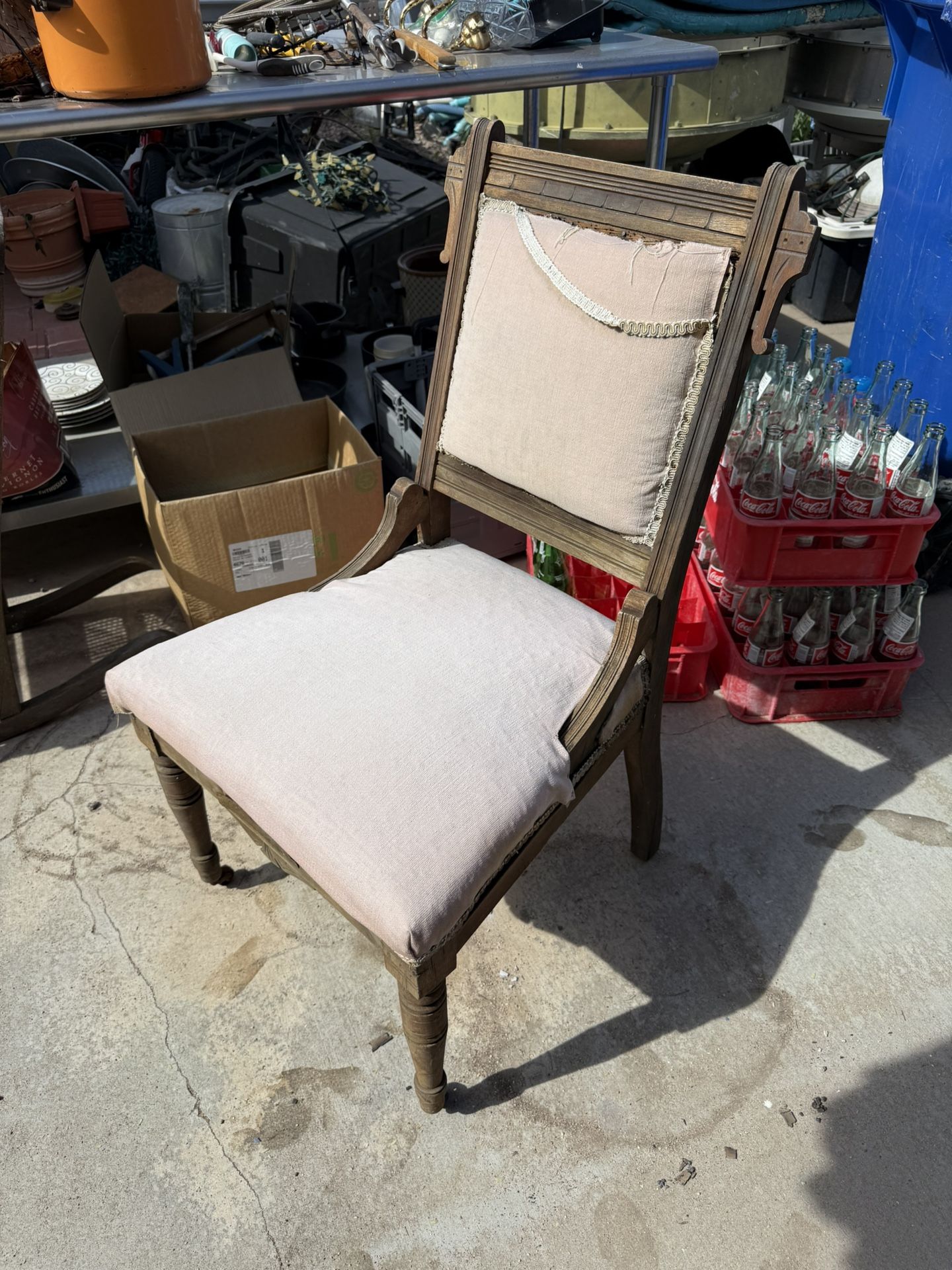Vintage chair project/parts.$7. Great candidate for makeover. Seat is 18 inches wide. Back is 35 inches high. ><> All offers will be considered. We are located at Broadway and Camino Seco. Cash only. Pick up only. HE>i