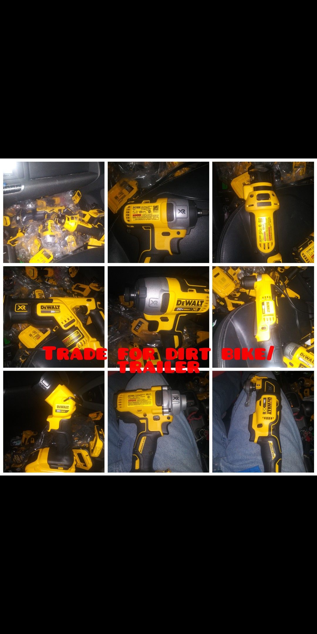 DeWalt tools will trade I sell them at 65%of new if you cannot figure that out do not respond to my ad