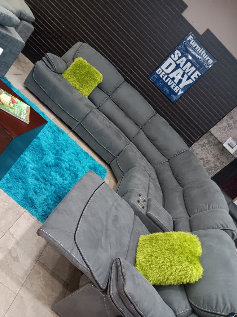 *Weekend Special*---Alejandra Stunning Gray Fabric Reclining Sectional Sofa---Now $1199---Delivery And Financing👌