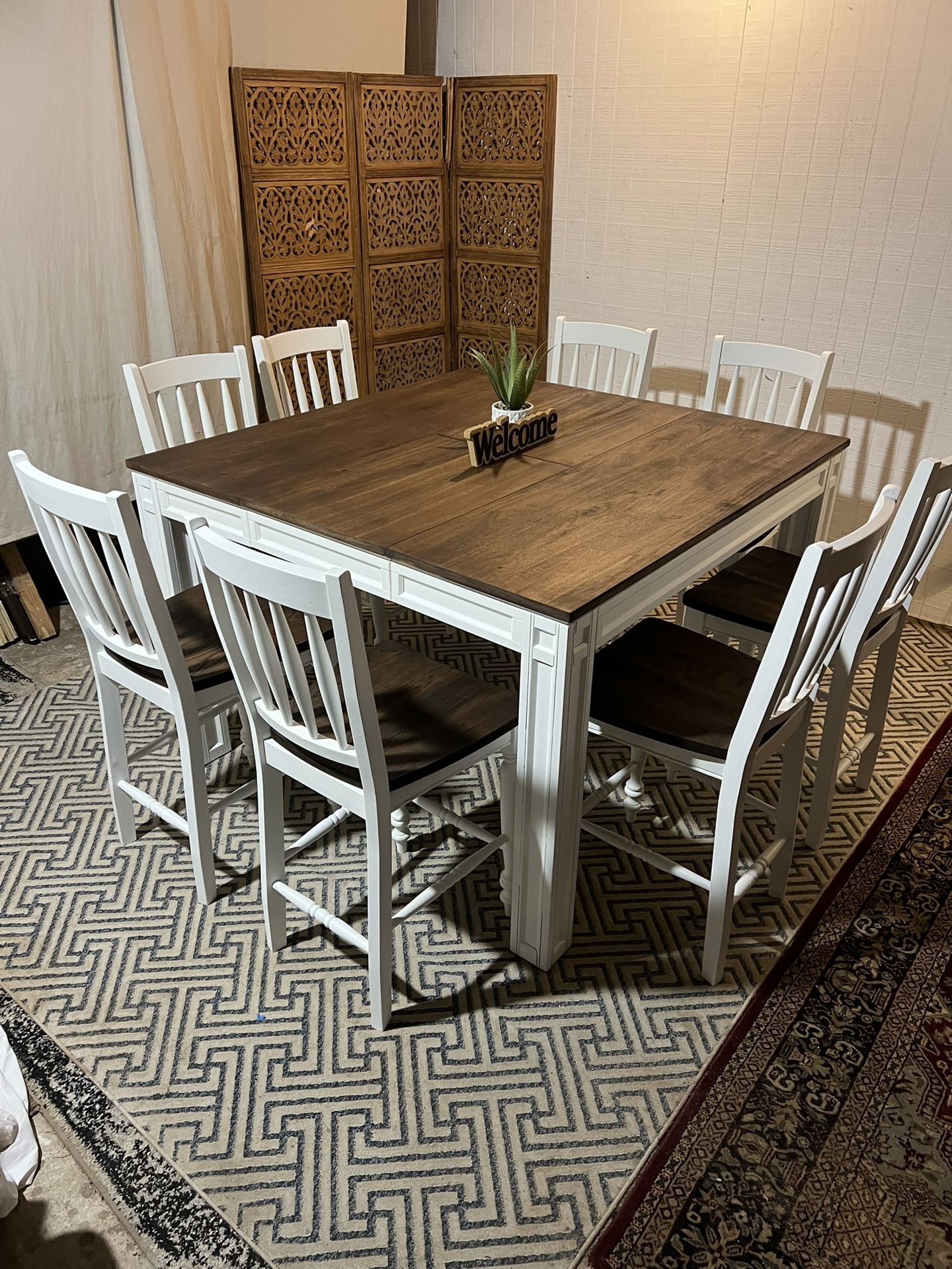 Farmhouse 9 pc counter height table w/8 chairs good condition and clean $550 delivery available $20