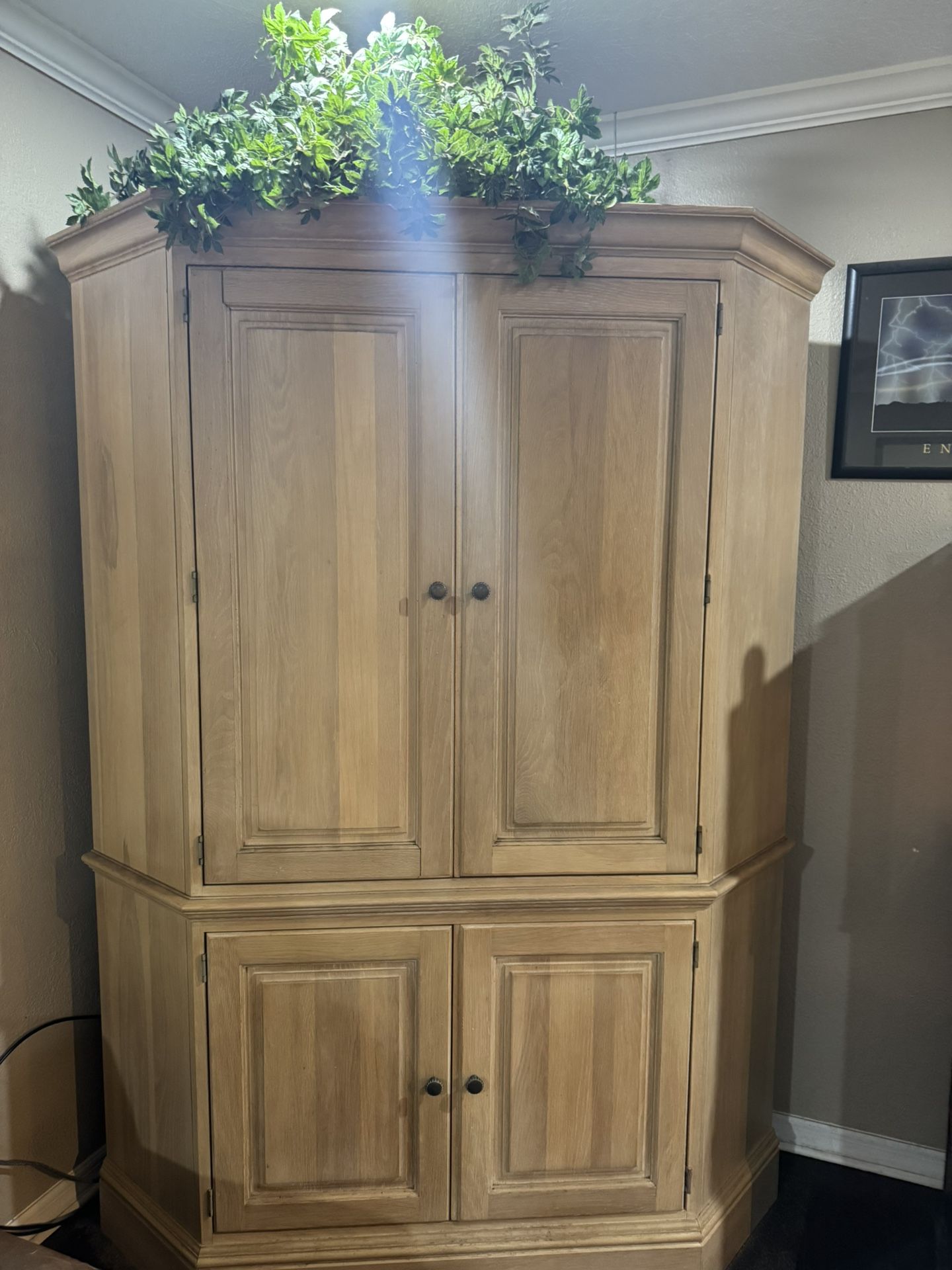 Solid wood! Very heavy in great condition. Need gone ASAP FREE