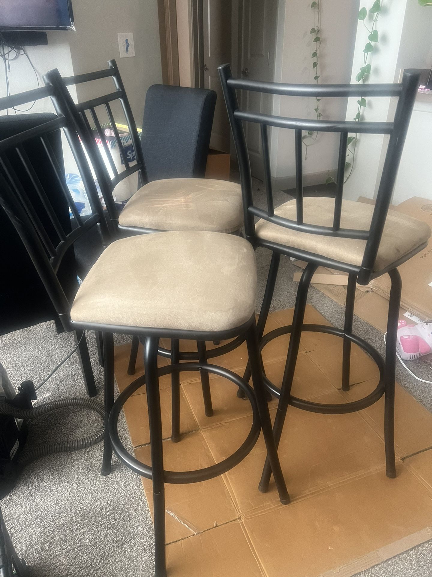 3 Bar Stools will need some cleaning. One stool is missing screws to back but still works. $25 B.O