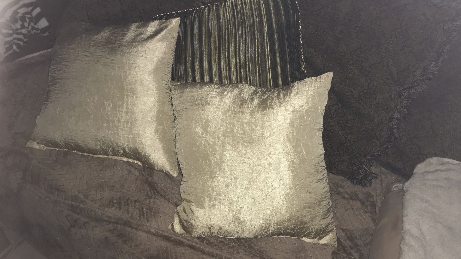 1 dark sage green pillow-great condition-beautiful rope border 2 light beige crinkle fabric pillows-great condition Bed or couch decor pillows Pick up only Near rodeo grounds