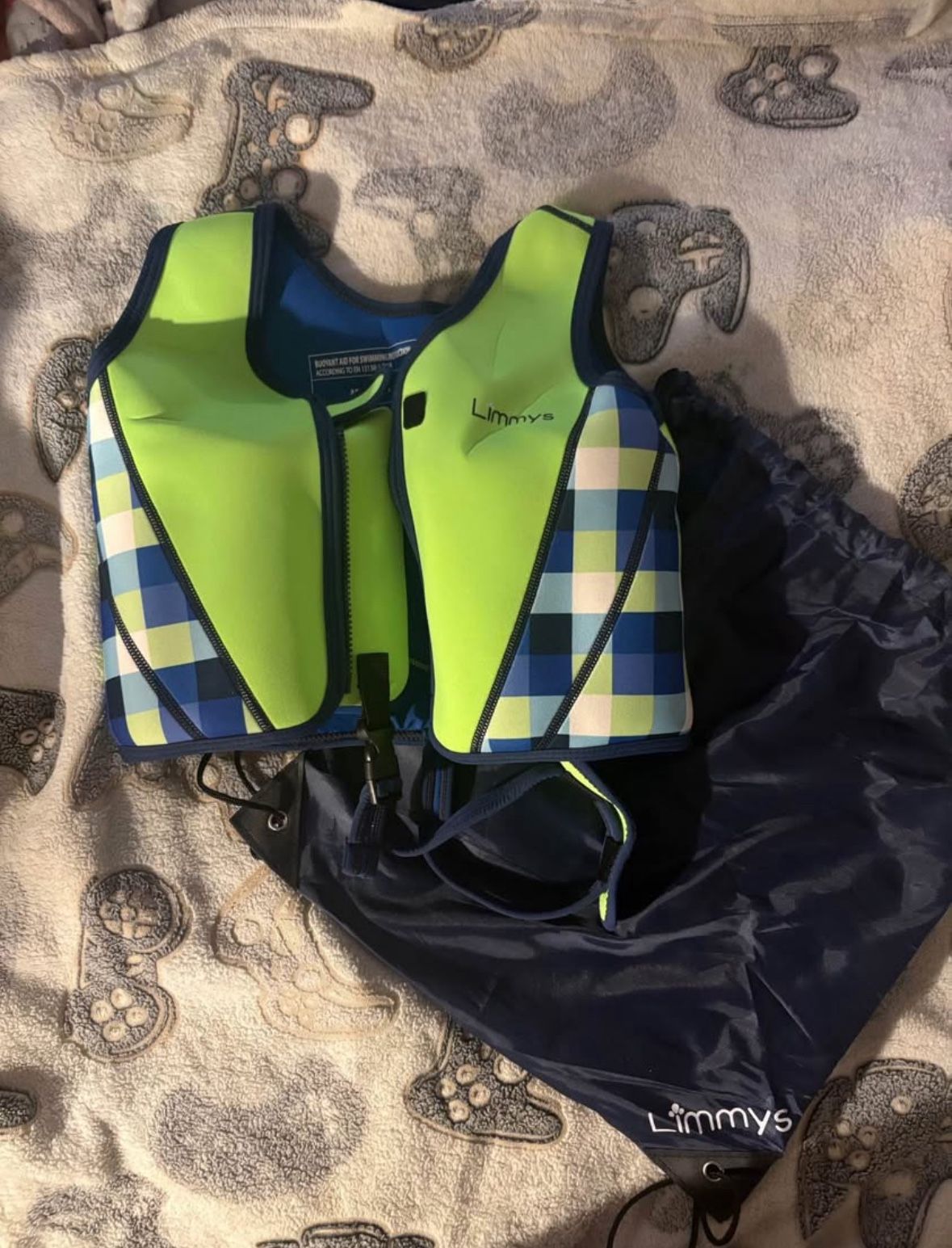 Limmy’s children’s life jacket for ages 5-9 or 23-32 kg. For learning to swim! Comes with carrying bag. Only used twice. Has some wrinkling from being stored in the bag. Retails for $40-$50. Asking $30. 77098 local pickup preferred, but may be willing to ship!