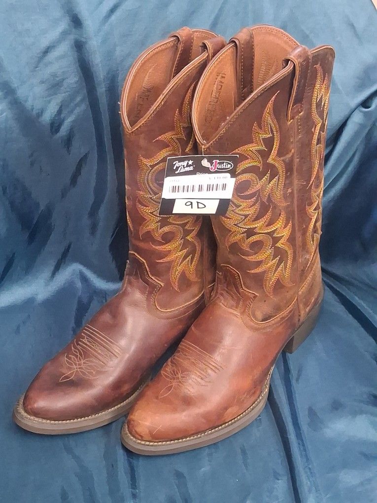 Justin Boots x Tony Lama Men’s Cowboy Boots Brown Leather Size 9D