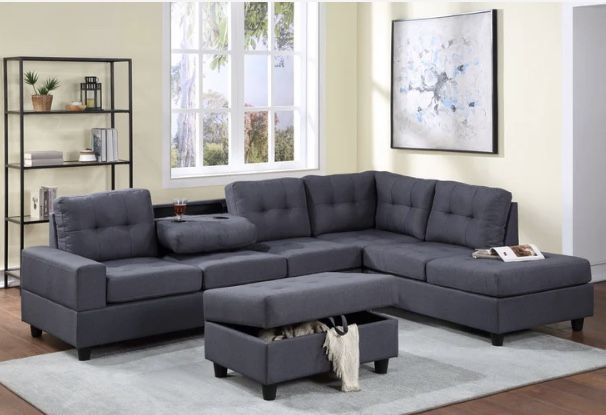 Heights Gray Reversible Sectional with Storage Ottoman ( sectional couch sofa loveseat options