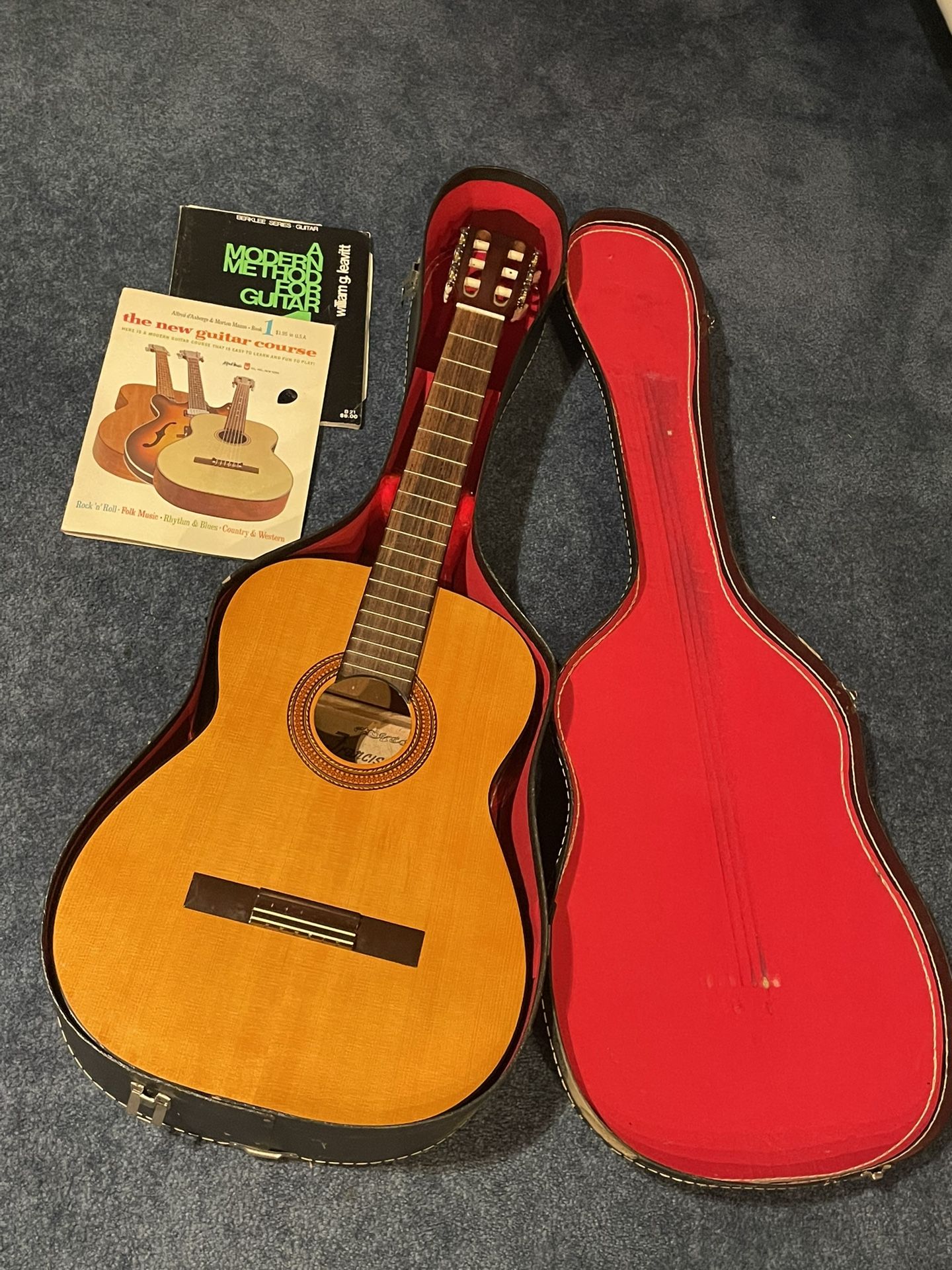 Excellent classic Franciscan guitar, case, and course books.
