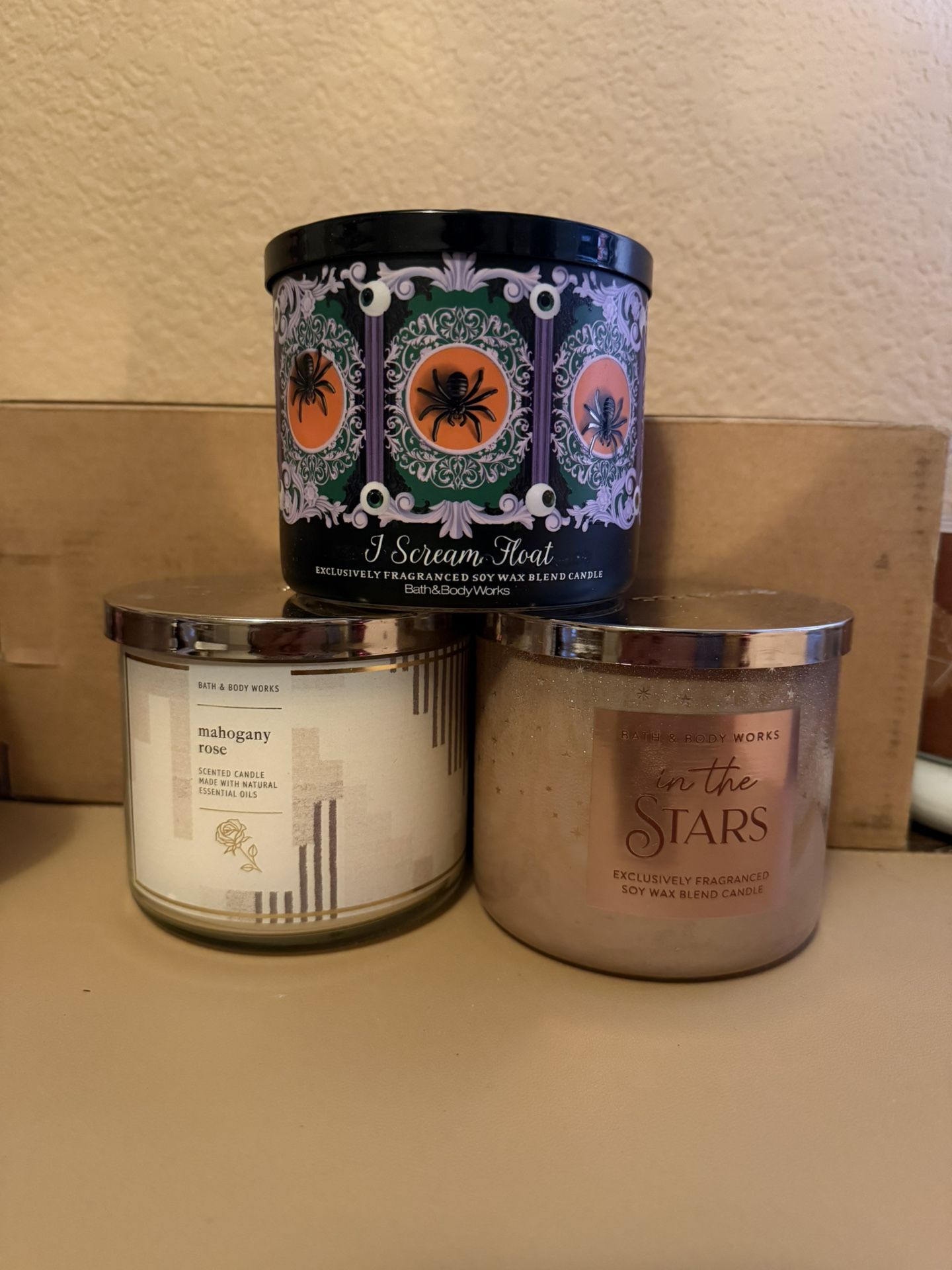 Bath and body three wick bundle I scream float In the stars Mahogany rose