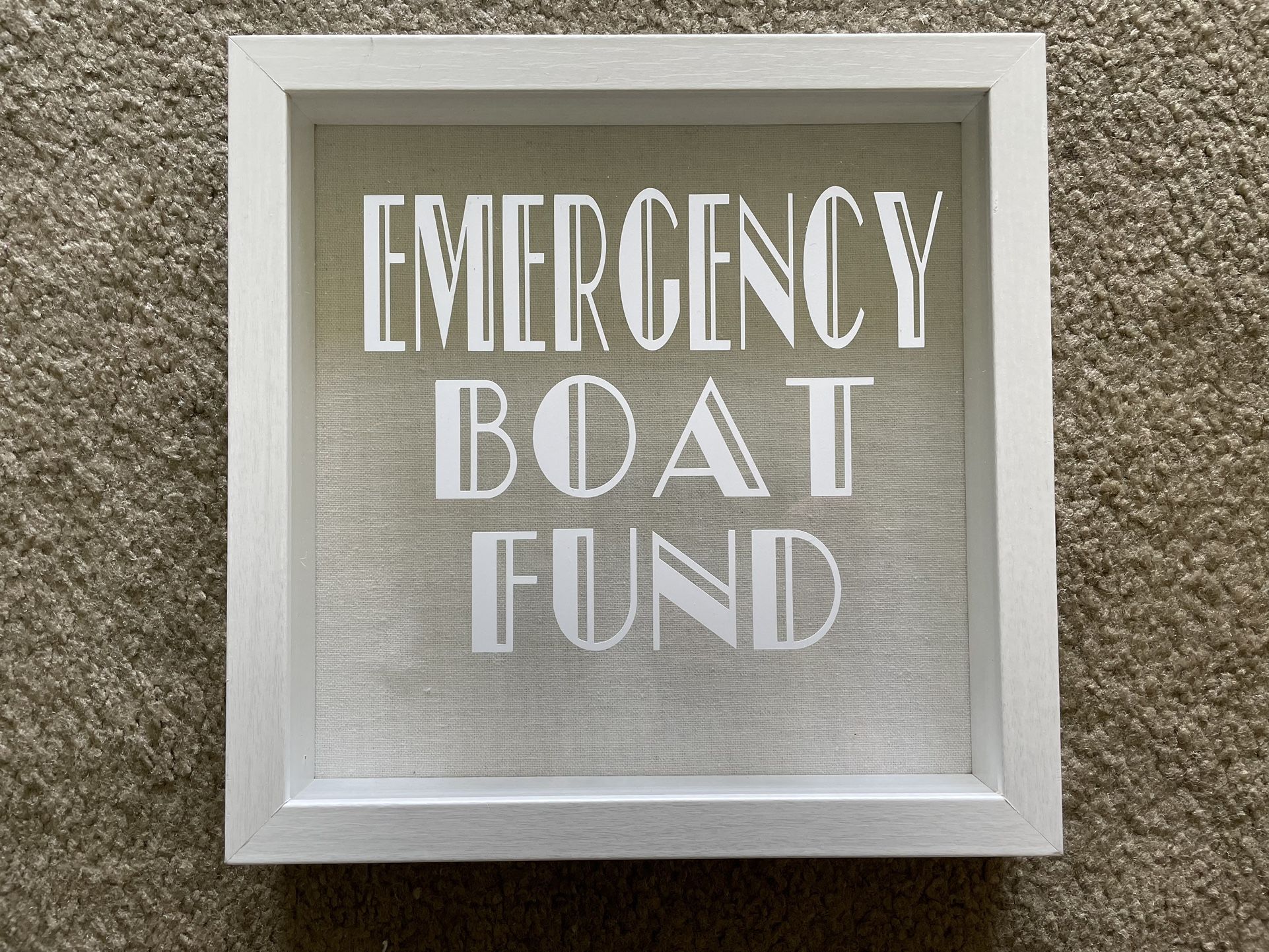 EMERGENCY BOAT FUND WALL PLAQUE WOOD & GLASS 10” x 10” EXCELLENT CONDITION $15.