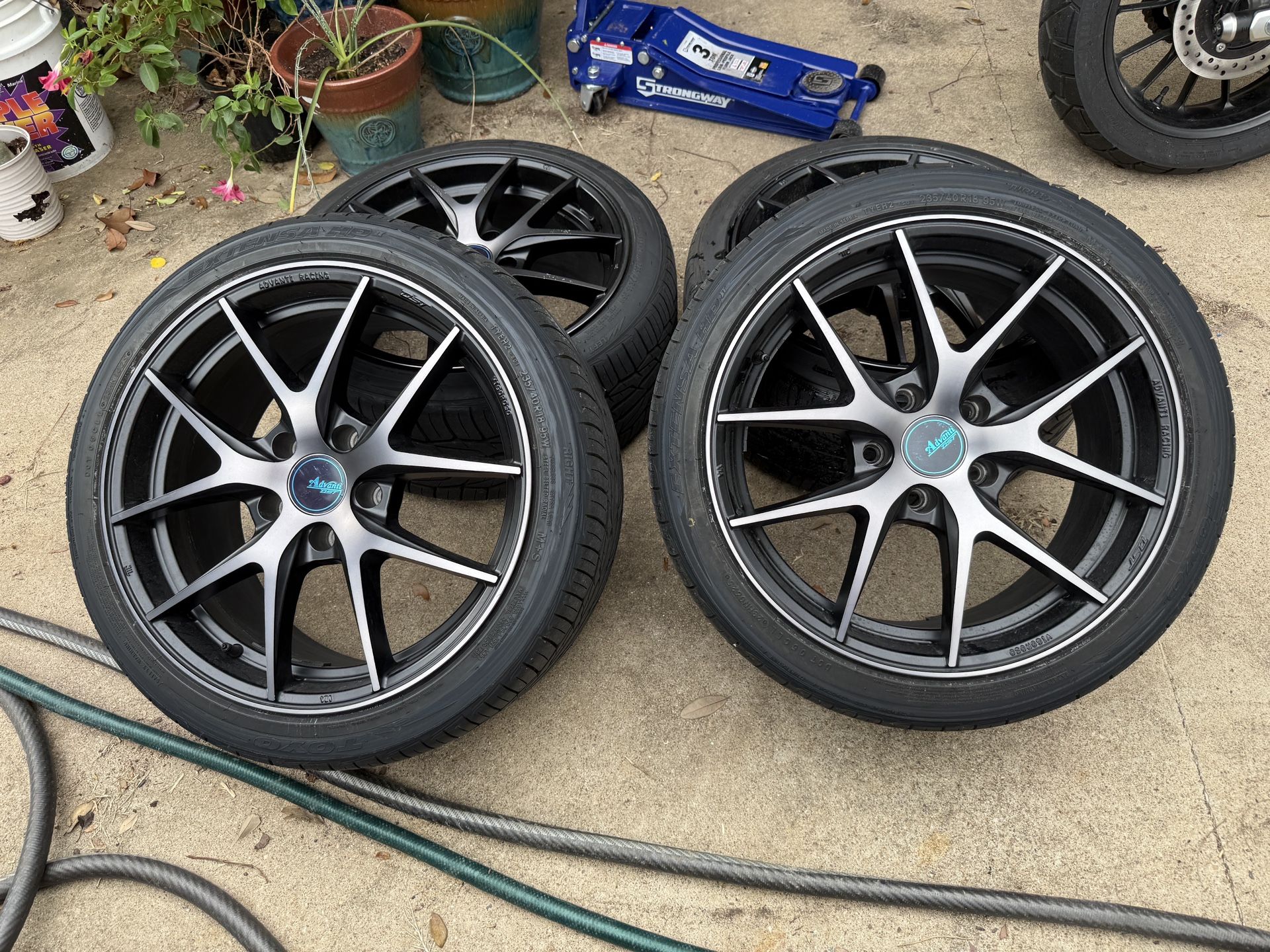 Only used for less than 200 miles before selling car. Bought brand new. Paid $2,000. Looking for reasonable offer. 5x120mm bolt pattern. 45mm offset.