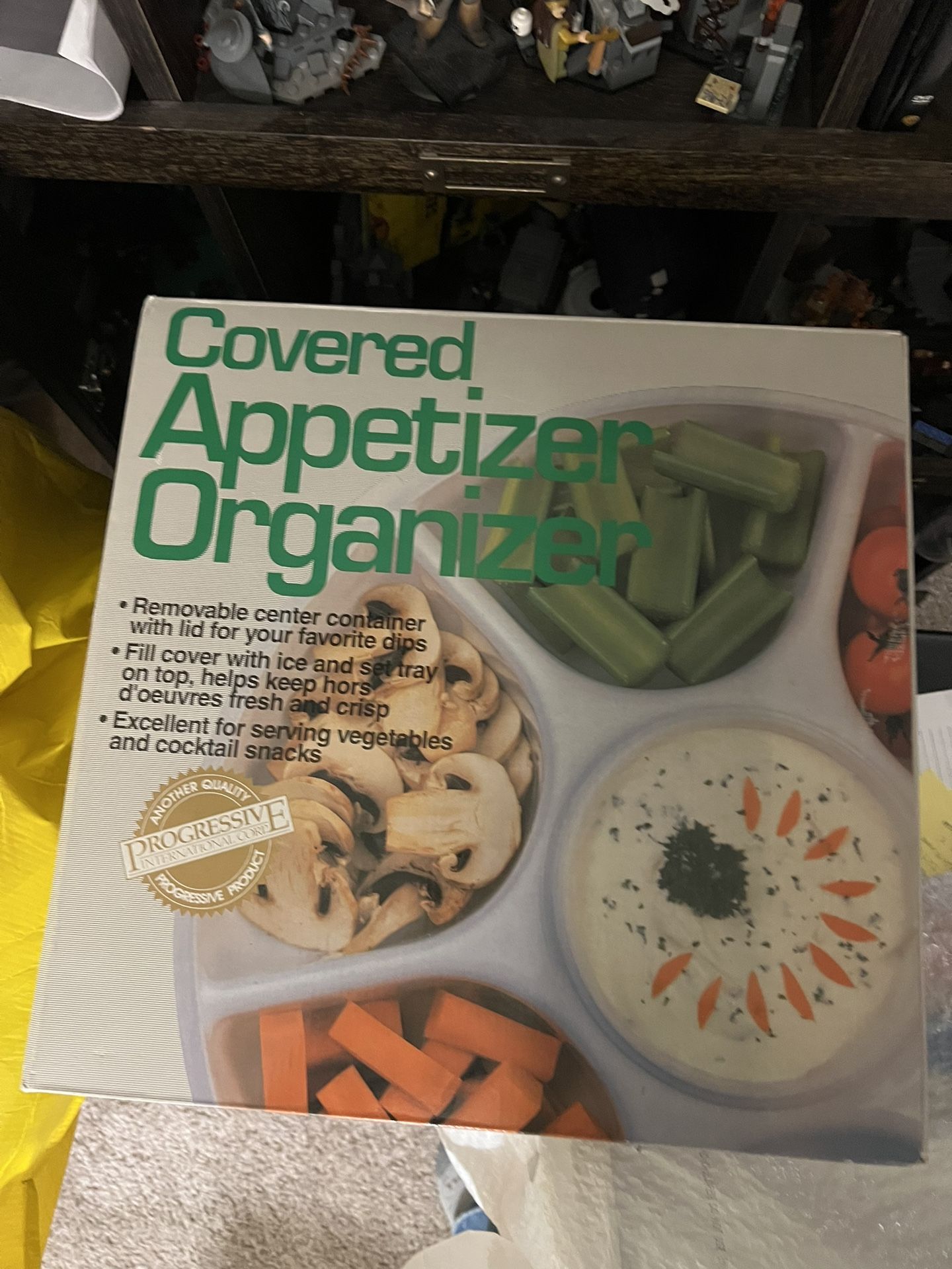 Nice sturdy appetizer or even dessert - think sundae bar or chips! Party server with 6 sections! And a 7th section in the middle which holds a container with lid - for dip ! (Not for hot items) serve ware only Lightly used- like new! Local pickup Cash only