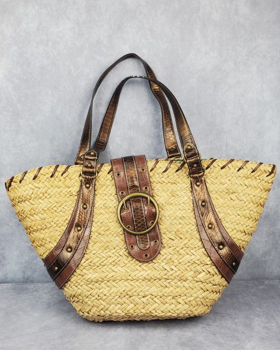 Nine West bronze handle wicker tote Straw Beach Women's bag