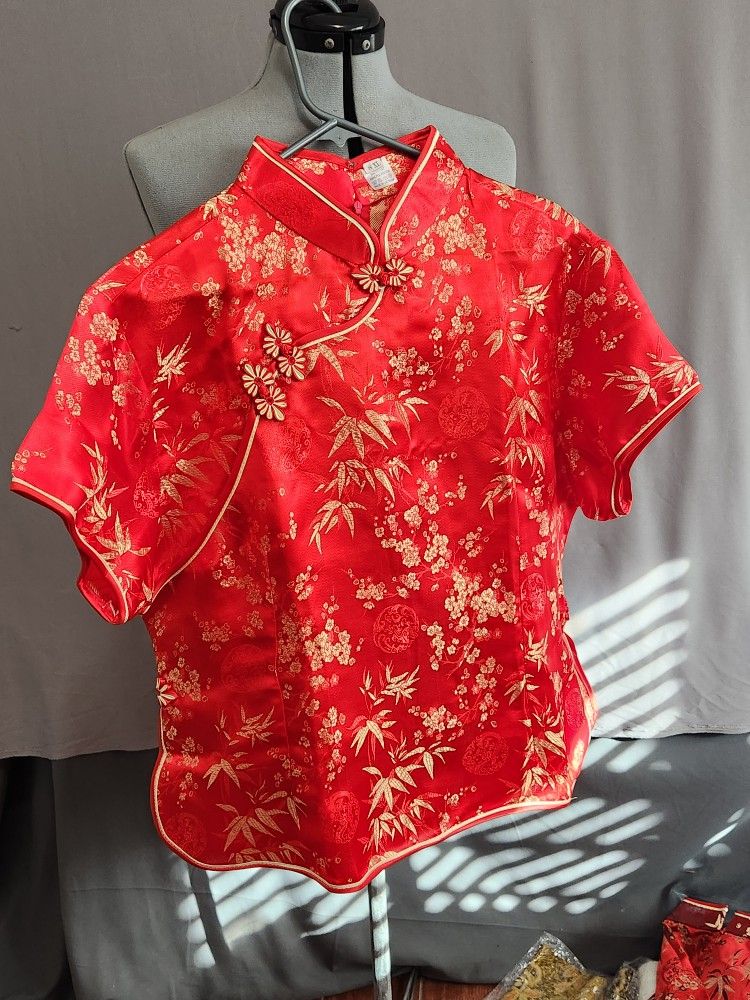 New Women Middle-aged and Elderly Women Cheongsam Thin Top Summer New Mother Chinese Retro Printing Shirt Sz 18 XXL