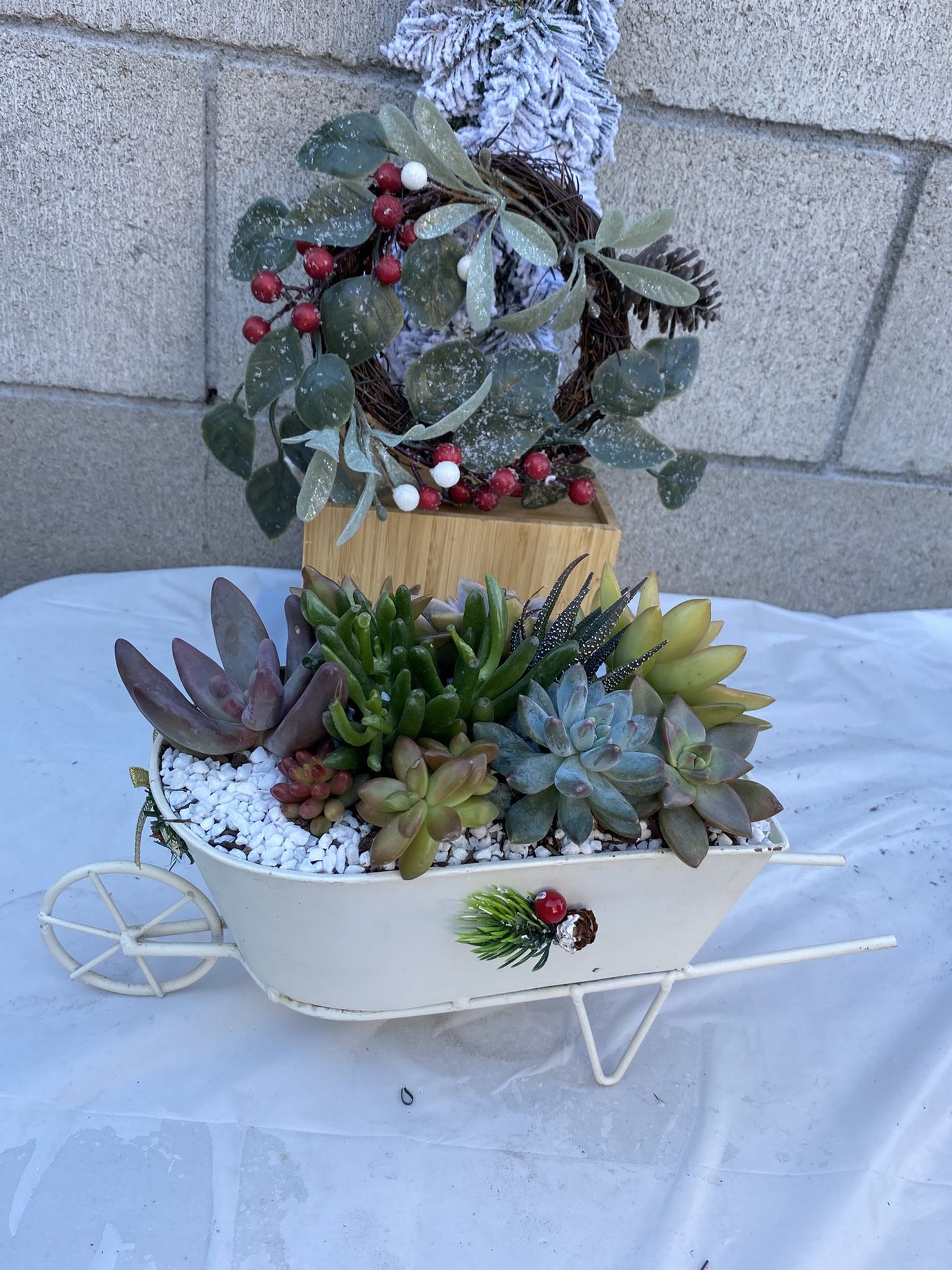 Wagon with natural succulents, ideal to give at Christmas