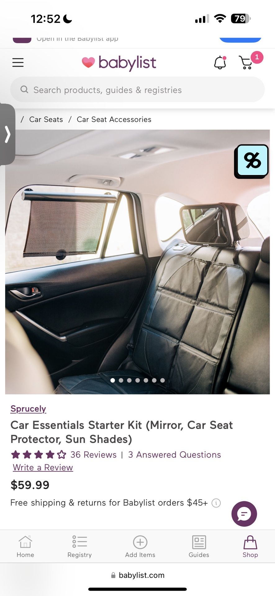 Sprucely Car Essentials Starter Kit (Mirror, Car Seat Protector, Sun Shades)