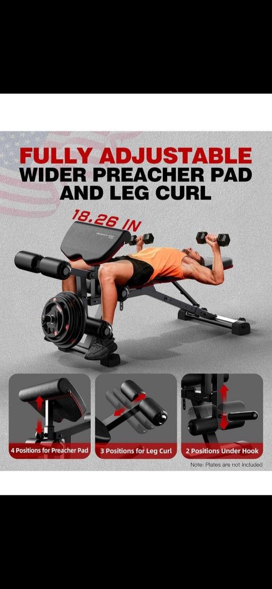 HARISON Adjustable Weight Bench with Leg Extension, Preacher Pad, /Incline/Decline Workout Bench for Training brand new it's still in the box ( Assembled required )
