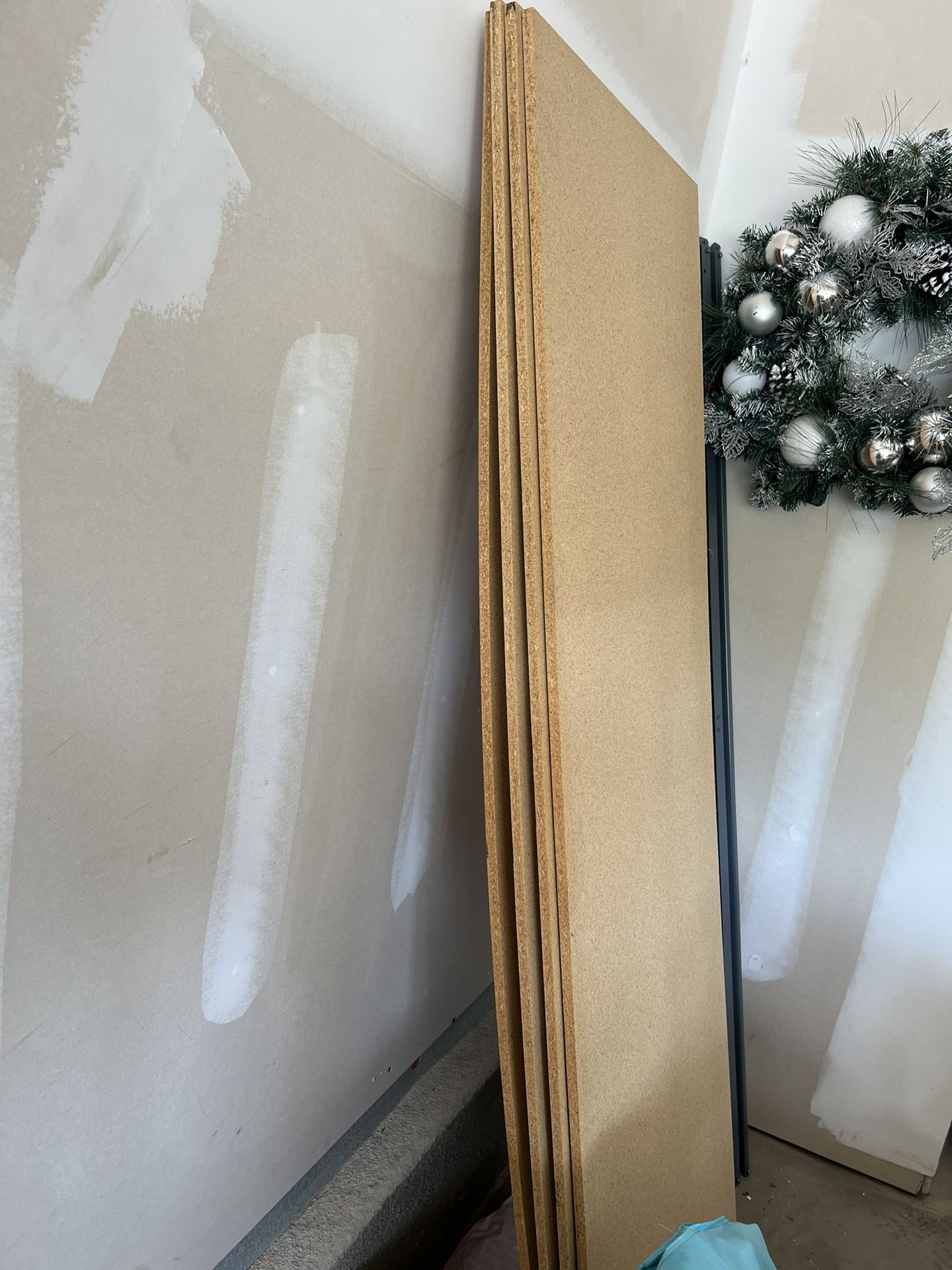 Shelves are unused 5 levels of ply board shelves, including brackets