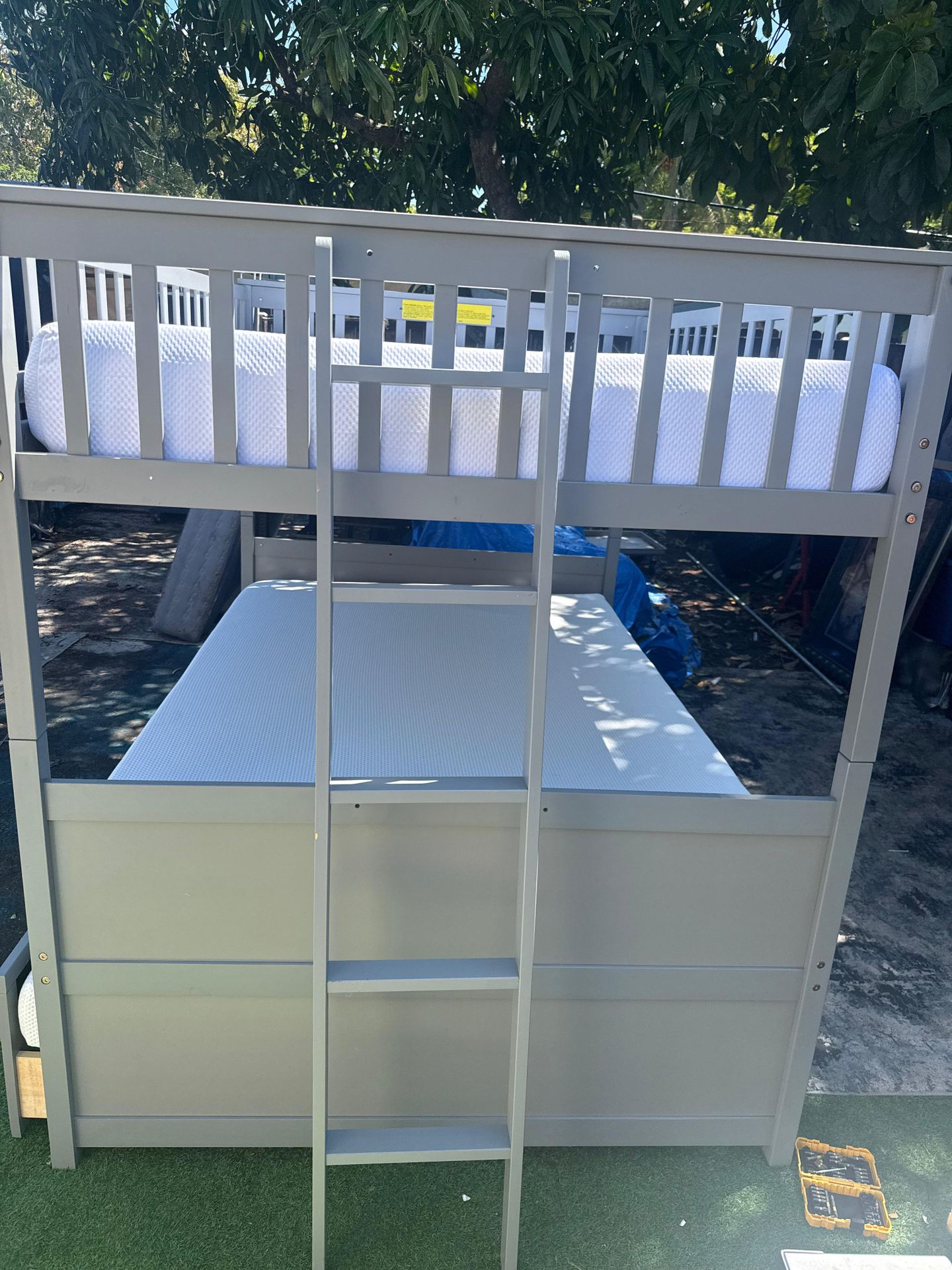 Litera full sobre full con cama twin de nido y 3 gavetas Incluye colchones en excelente estado Se ofrece delivery por un costo adicional el cual depende de la direccion 🚛 Somos tienda física de productos de segunda mano, tenemos todo para amoblar tu hogar🏠 Estamos ubicados en Hallandale 📍