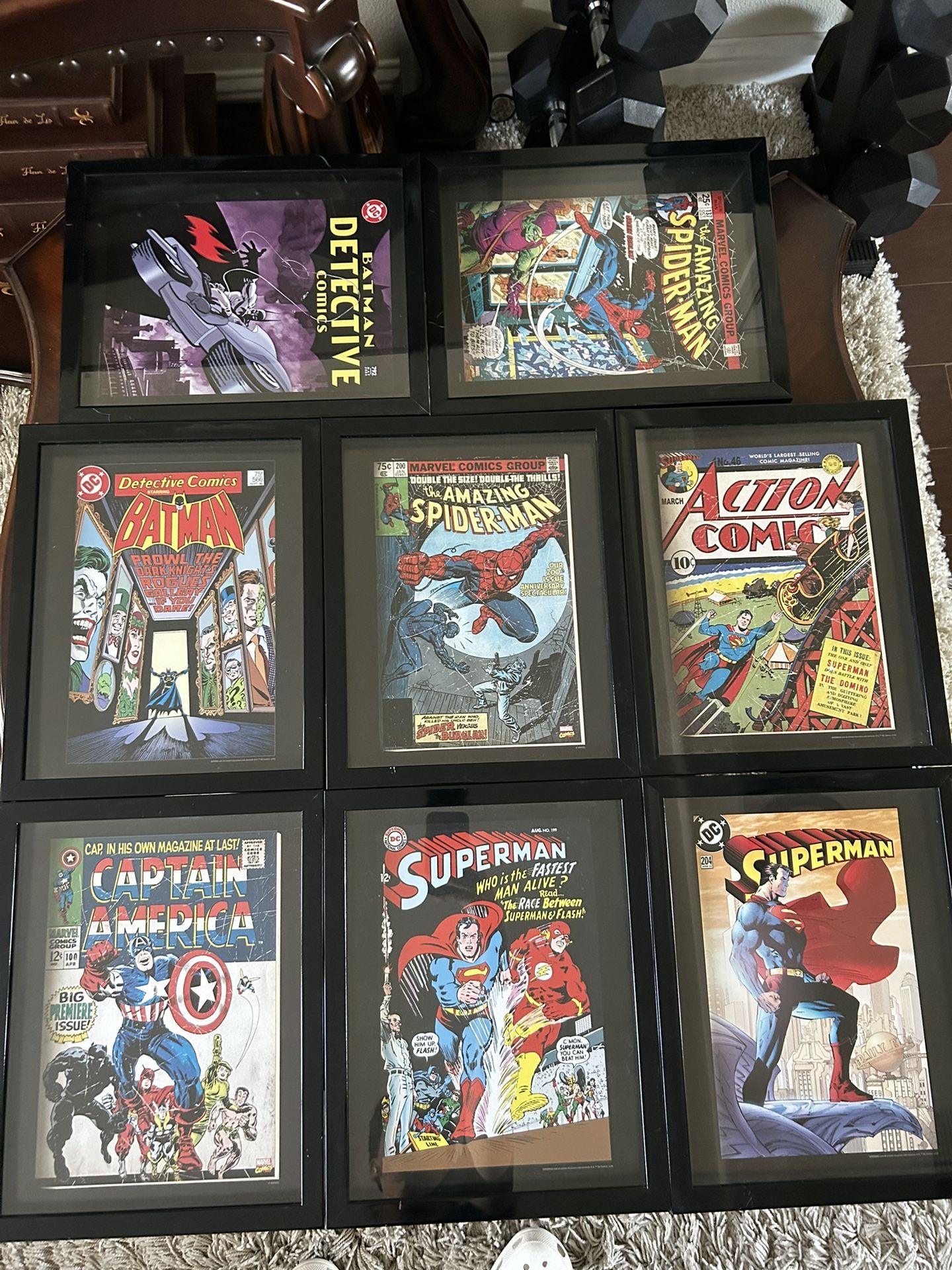 DC and Marvel Wall Decor Set 8 Total Comes In Frames Not Actual Comic Books, Only Display Price Negotiable
