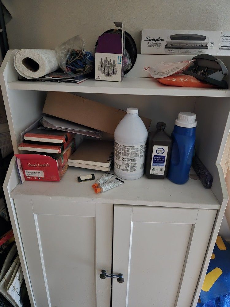 White dresser is $70. Message for prices of other items. Moving out. Selling pictured items and additional items in apartment. Including several bookshelves, 2 TV stands and a step ladder.