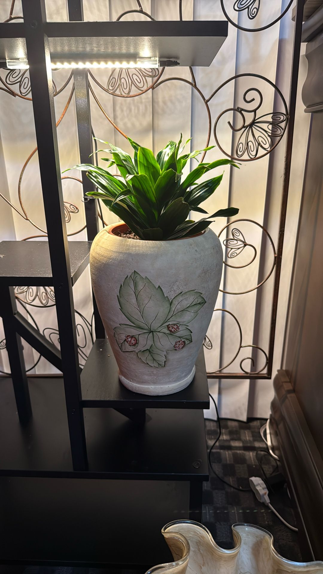 It just fit too perfectly in this secondhand store pottery. Look up a mature one. This will look very cool. You can get deeper nursery pots that fit as he grows.