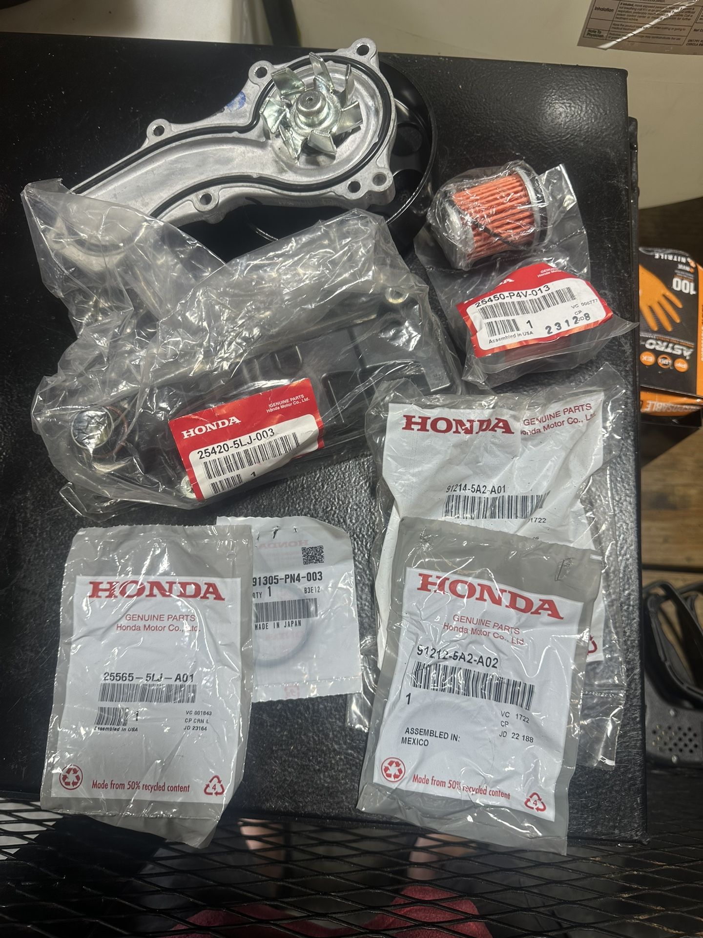 2015 Honda accord sport 4cyl All OEM parts 1 x water pump 1 x Front main Seal 1x Rear main seal 1 x Transmission Pre filter 1x transmission Main Filter