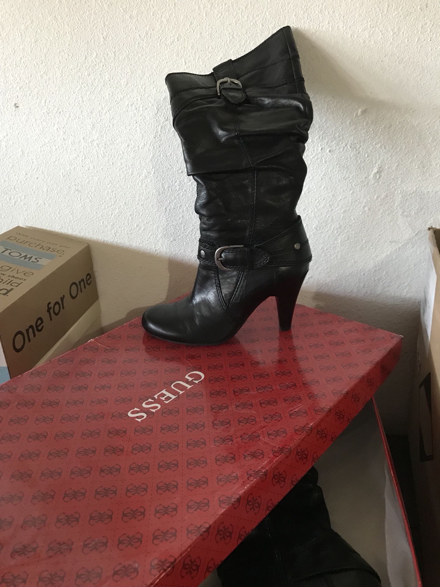 selling almost new Guess Leather Black boots, size 6 M, very good condition and in box